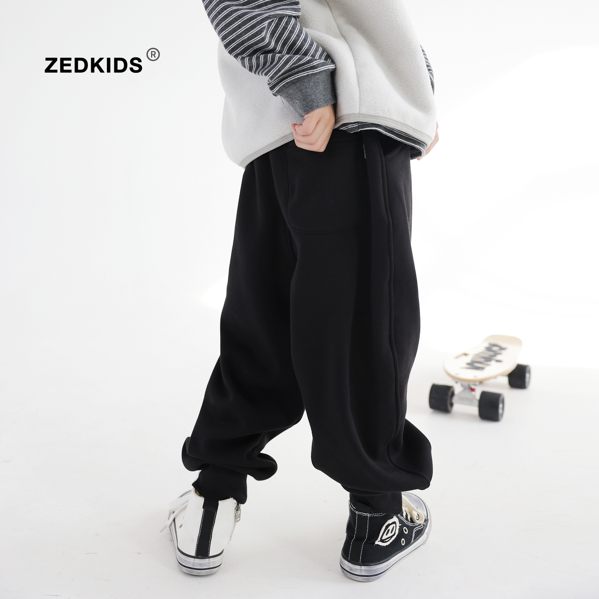 男童加绒运动裤一体绒卫裤中大童冬季裤子柔软不倒绒哈伦裤校园裤