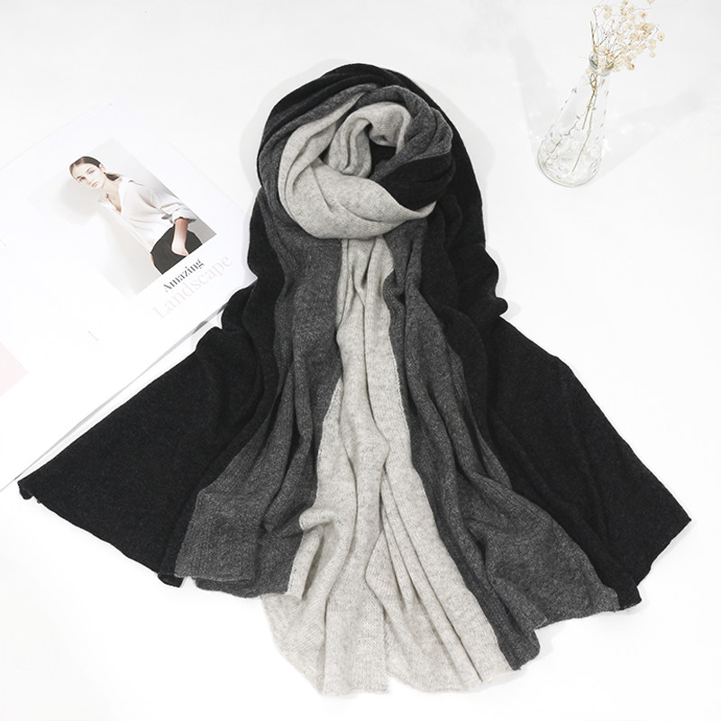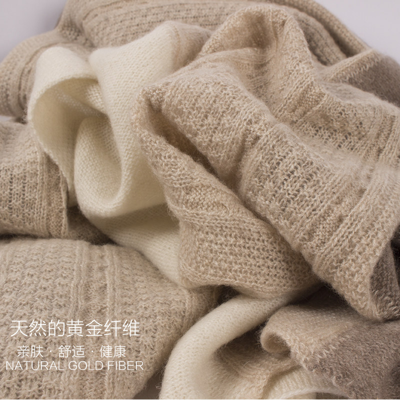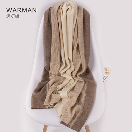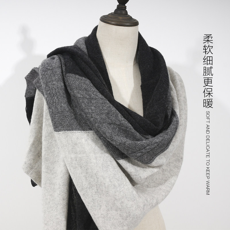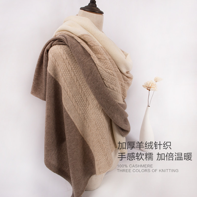 内蒙古针织山羊绒围巾披肩男女通用毛线麻花加厚拼色韩版长款围脖