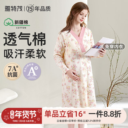 【送胸垫】孕妇秋冬季纯哺乳睡衣产后月子服产妇产房待产连衣裙