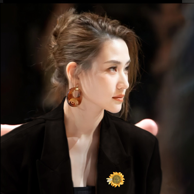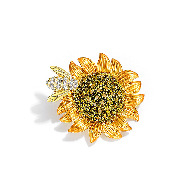 蜜蜂向日葵胸针轻奢高档精致胸花小众设计防走光别针高级感配饰女