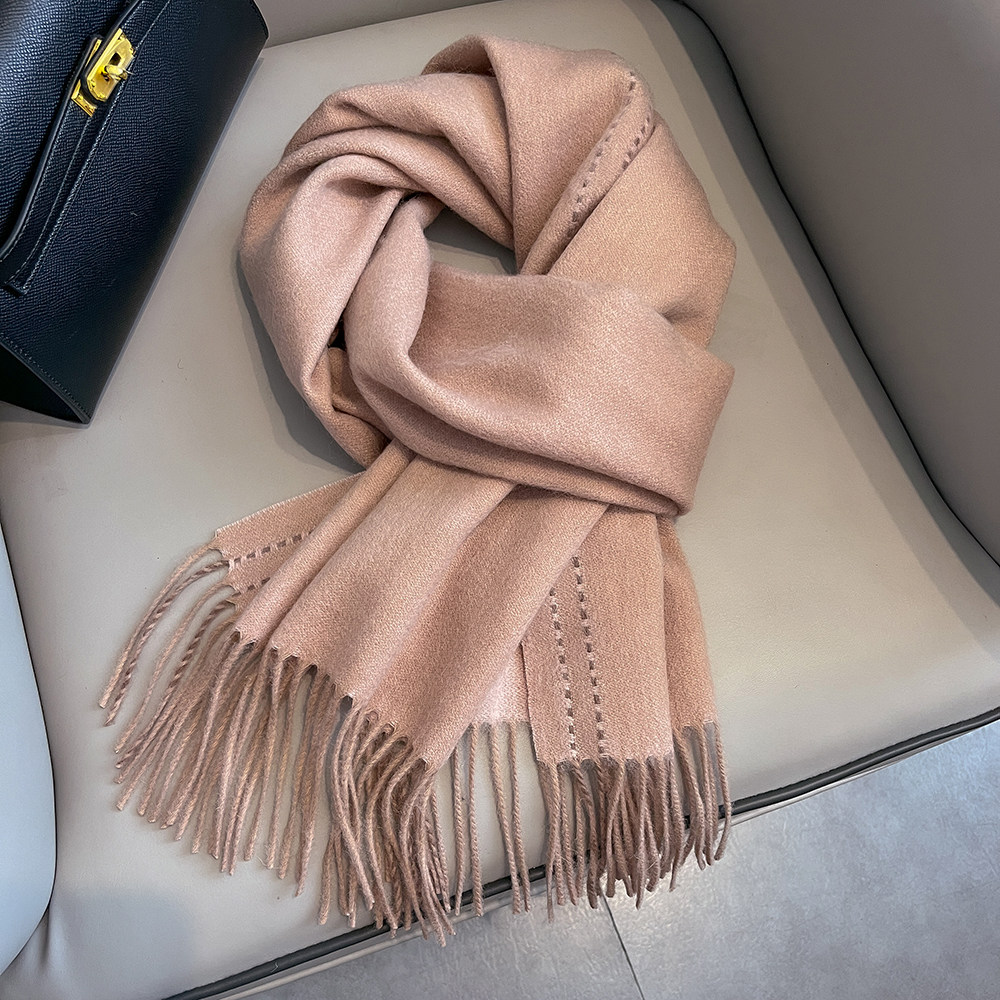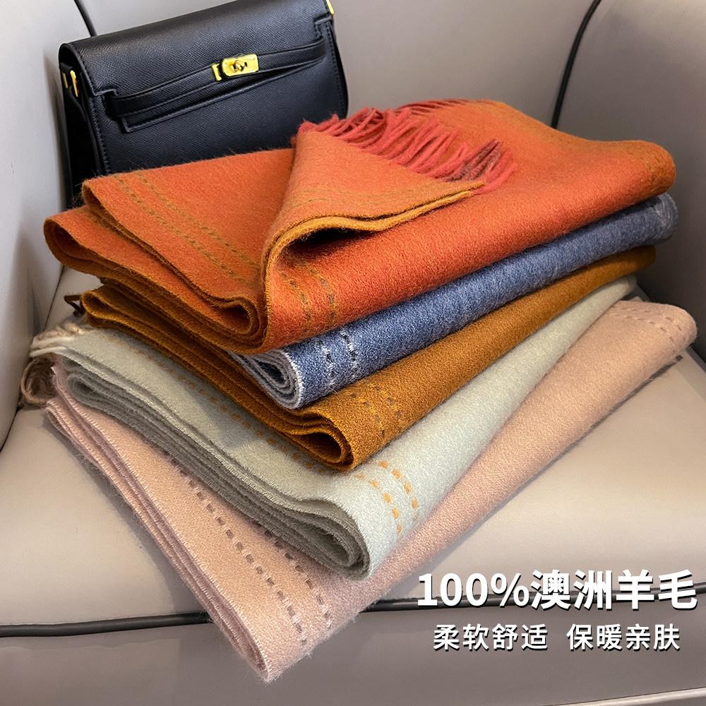 百搭100%纯羊毛围巾女纯色缝线设计双面羊绒披肩冬季保暖围脖