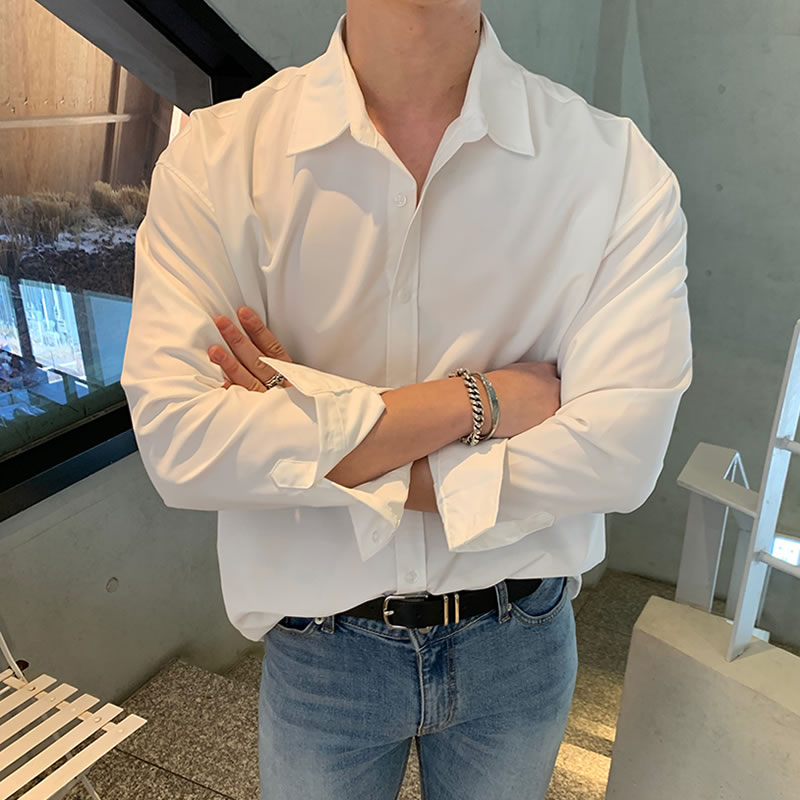 春季白衬衫男长袖休闲潮牌高级感韩版潮流春秋款宽松衬衣男士青年