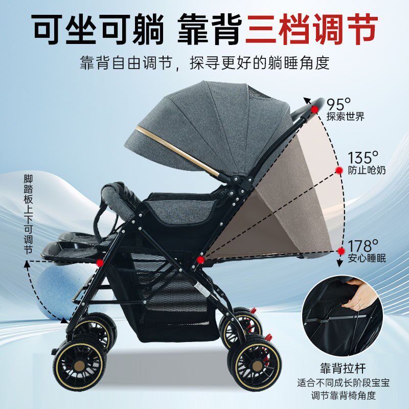 双胞胎婴儿推车可进电梯可坐可躺轻便折叠二胎小宝宝双人遛娃神器