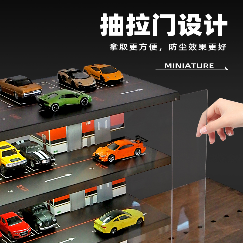 适用多美卡1:64车模展示盒合金小汽车收纳架车库模型防尘盒停车场