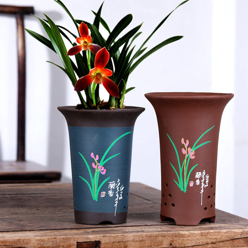 宜兴陶瓷紫砂大号吊兰兰花盆 出汗泥现代简约特价绿植园艺桌面盆