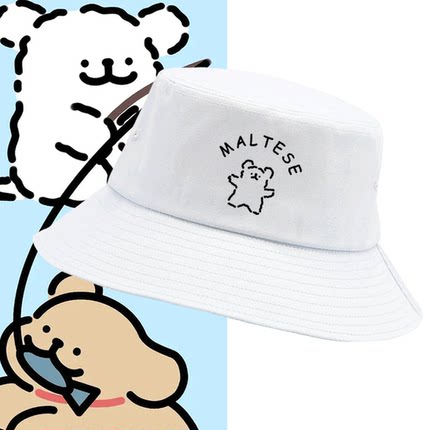 线条小狗周边可爱二次元卡通男女情侣学生可定制盆帽防晒渔夫帽子
