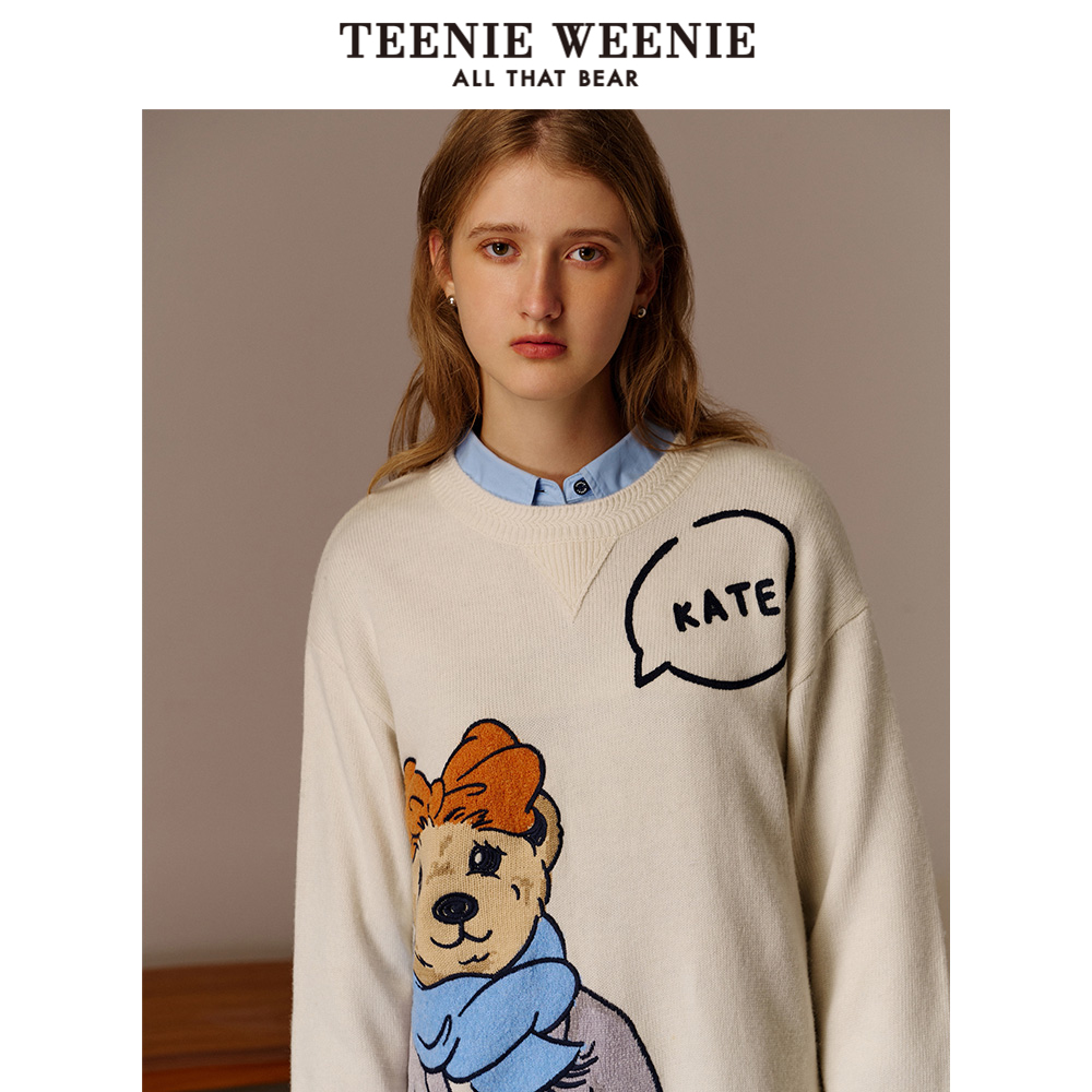TeenieWeenie小熊奥莱秋季提花套头白色毛衣针织衫小个子毛衫