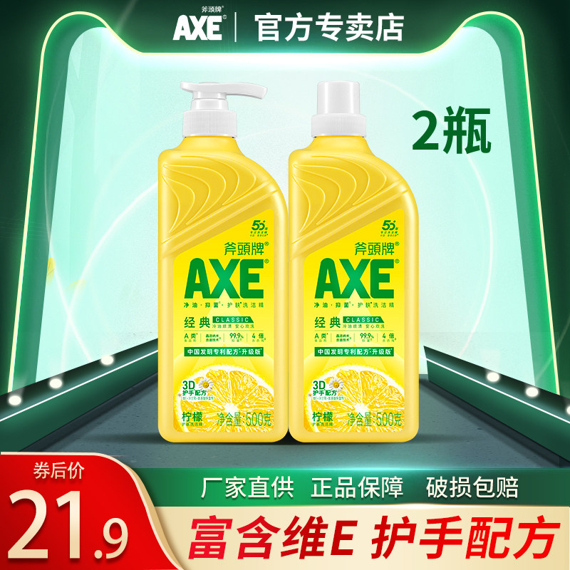 2瓶AXE斧头牌柠檬洗洁精家庭装家用小瓶500g2瓶a类官方正品旗舰款