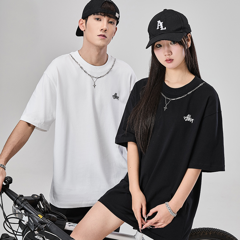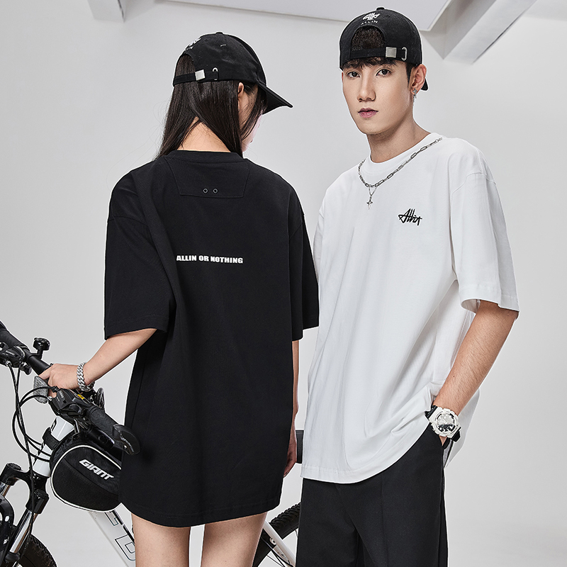 ALLIN 重磅纯棉短袖T恤男夏季字母刺绣情侣体恤美式潮牌半袖上衣