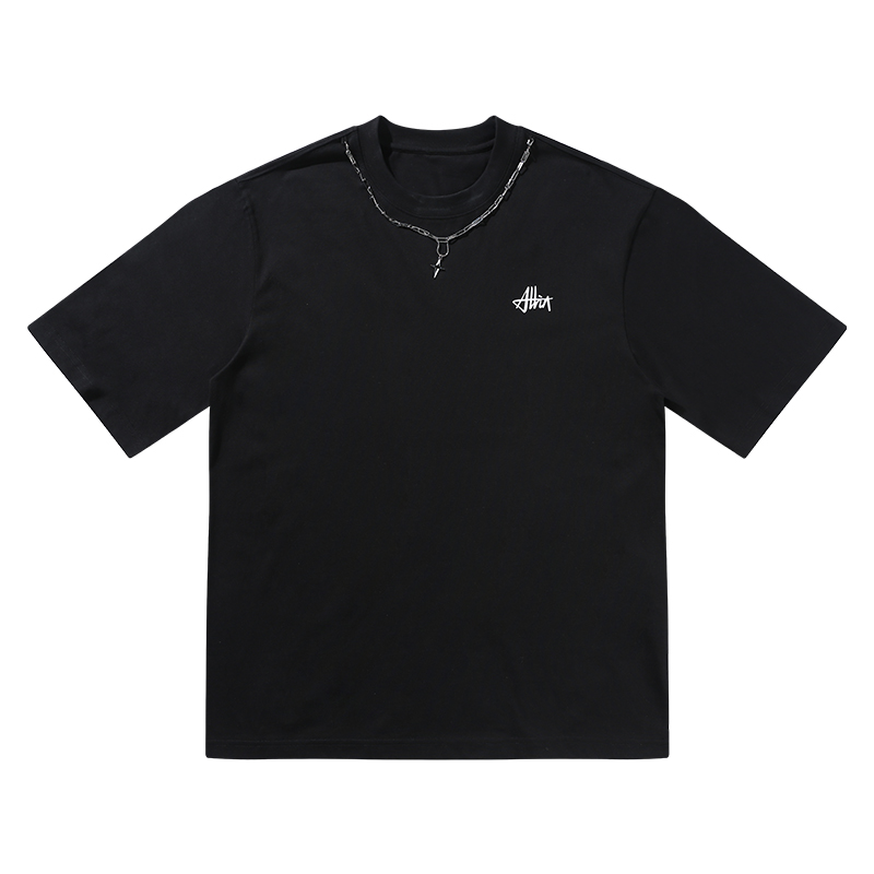 ALLIN纯棉重磅字母刺绣短袖t恤
