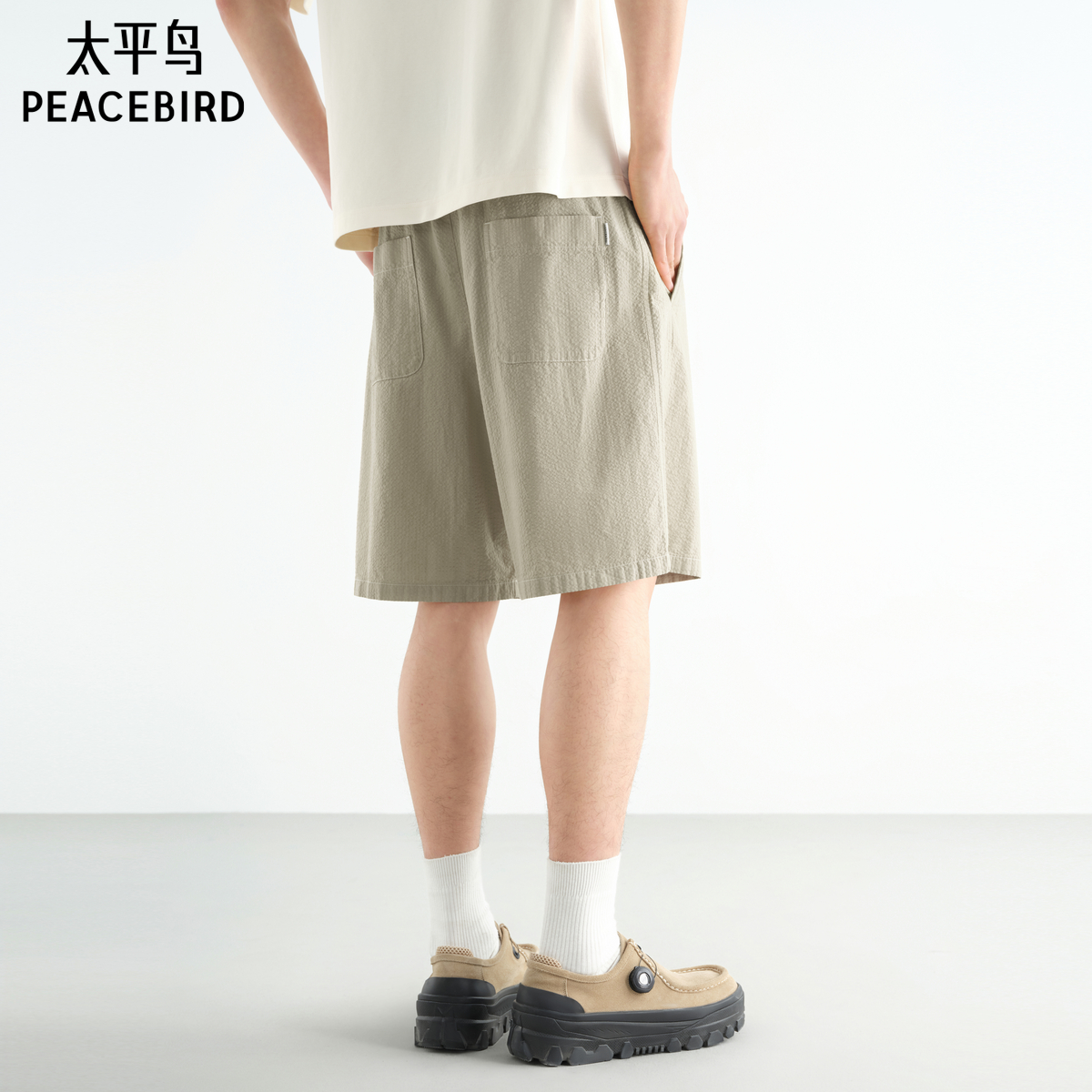 太平鸟男装休闲裤25夏新款宽松直筒中裤撞色抽绳运动百搭中短裤