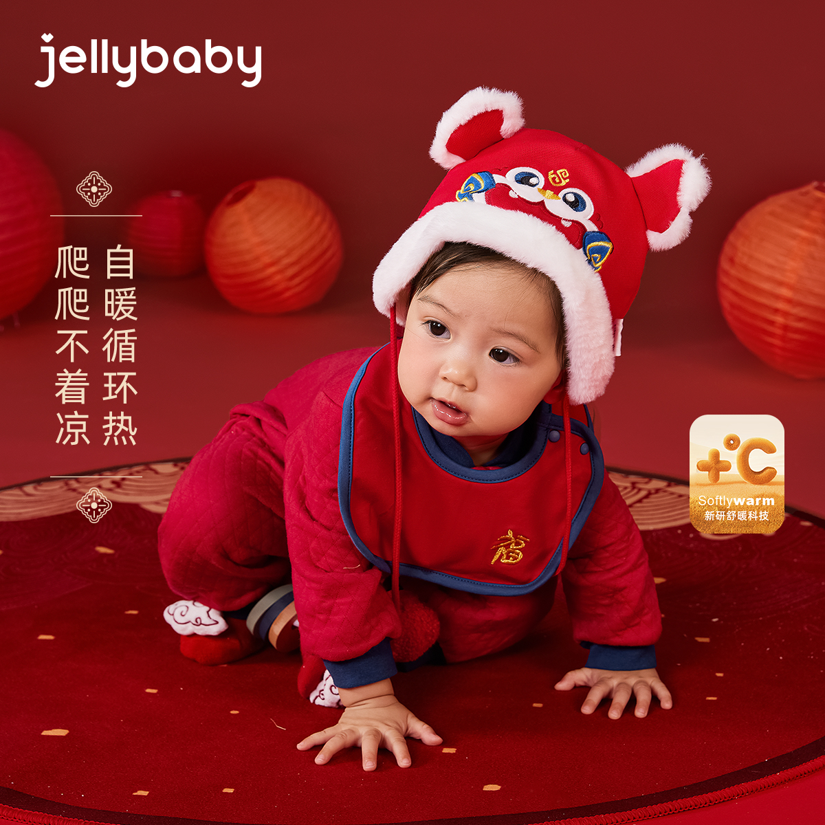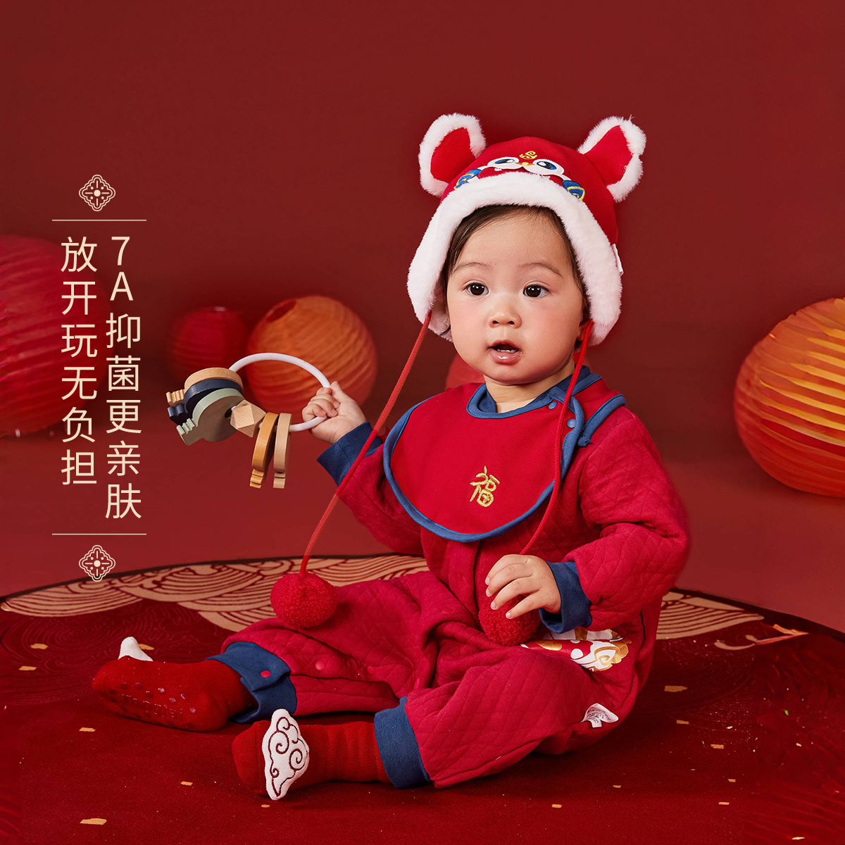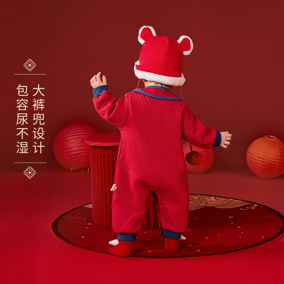 [抗菌]婴儿红色连体衣新生儿秋冬夹棉哈衣春秋款幼童礼盒宝宝秋装