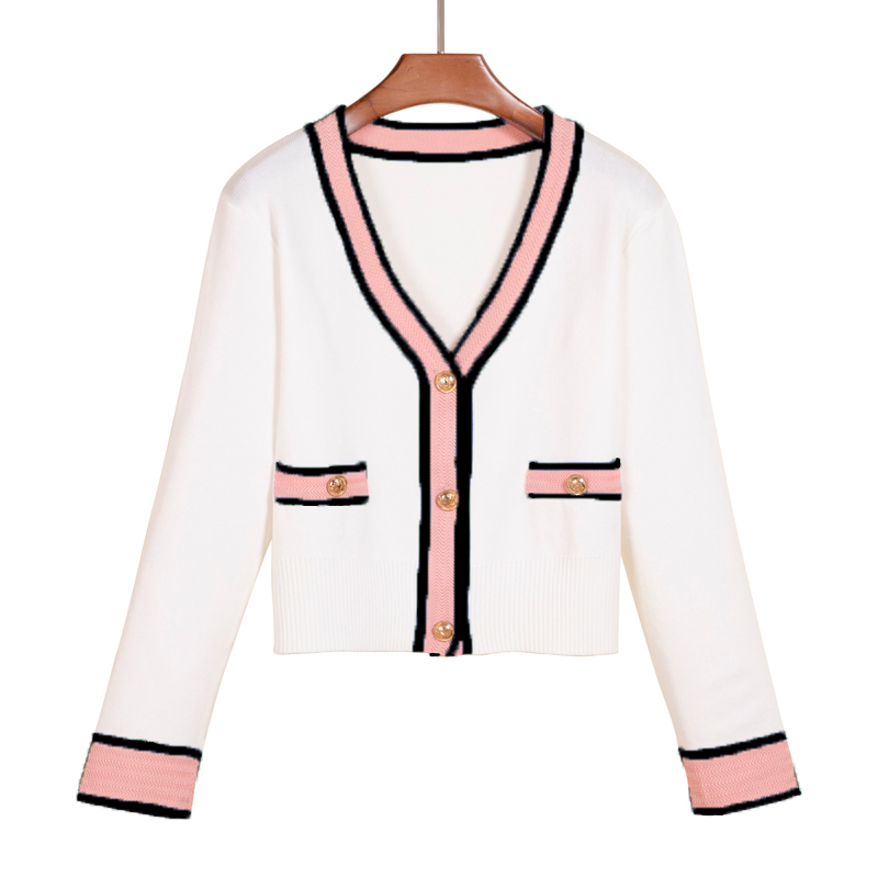 2025春装新款法式小香风气质短款针织上衣女百搭撞色开衫毛衣外套