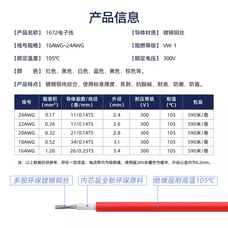 1672电子线双层绝缘导线美标24 22 20 18 16AWG仪器设备连接线