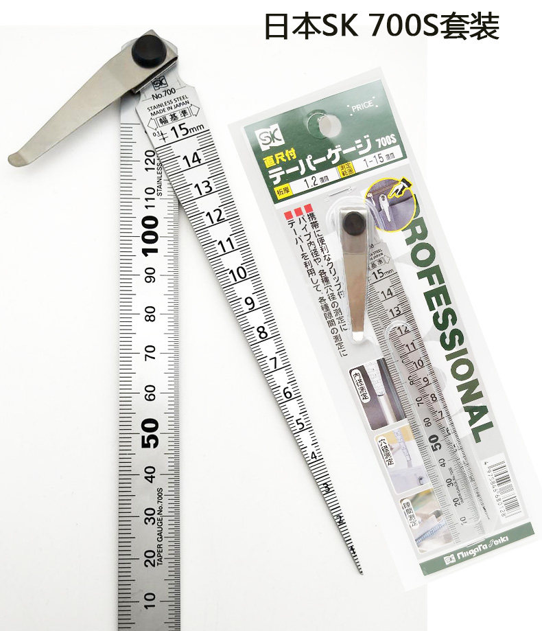 日本亲和钢直尺15cm斜塞尺700A间隙尺SK孔径尺腐刻锥度尺企鹅700S