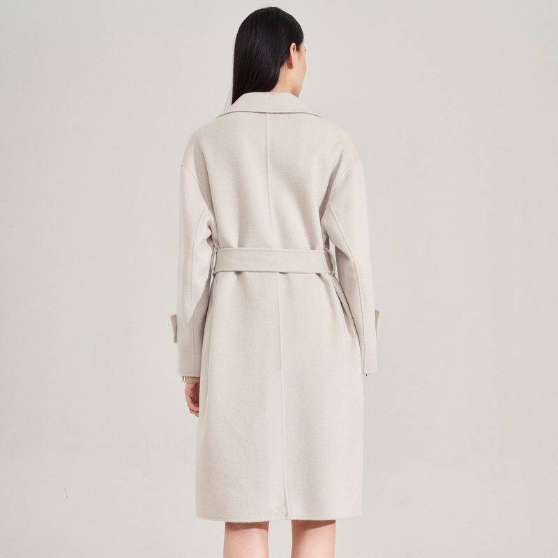 XG雪歌米白色中长款毛呢外套2024秋季新款山羊绒长袖绵羊毛大衣女