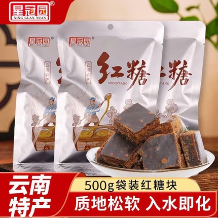 星冠园云南红糖块甘蔗熬制清甜不腻红糖水块日常调味品500g袋装