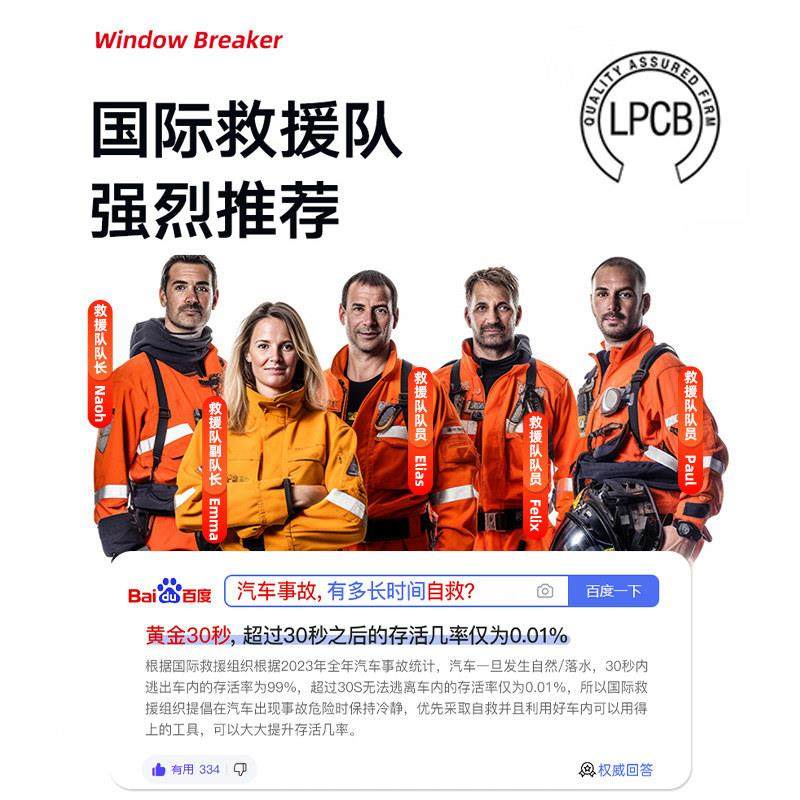 车载破窗锤弹簧撞杆式小车安全带切割器自驾救援随身防爆求生锤子