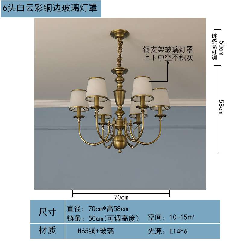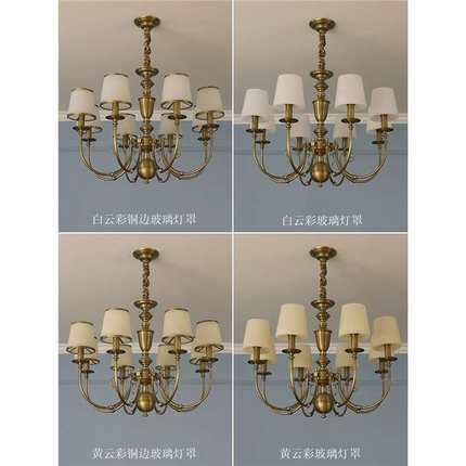 美式简约复古田园客厅玻璃灯罩灯具欧式大气别墅餐厅卧室全铜吊灯