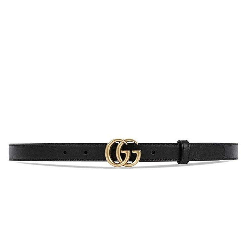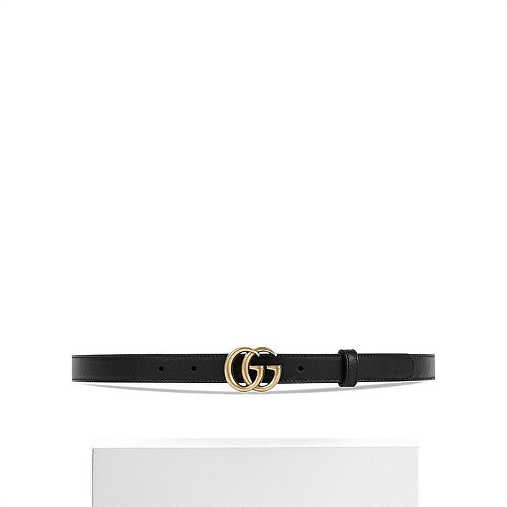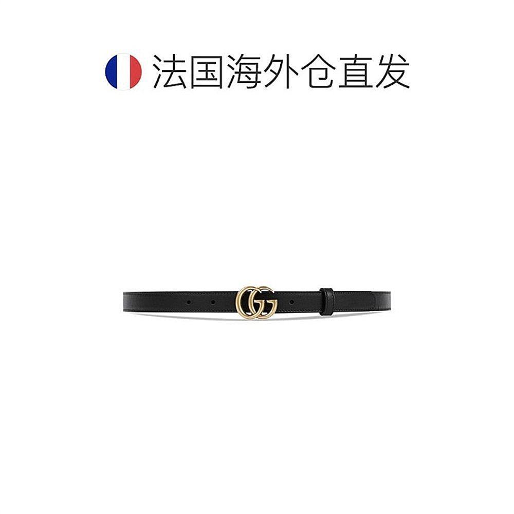 自营Gucci古驰女士皮革黑色时尚个性出行细款双G扣皮带腰带时尚