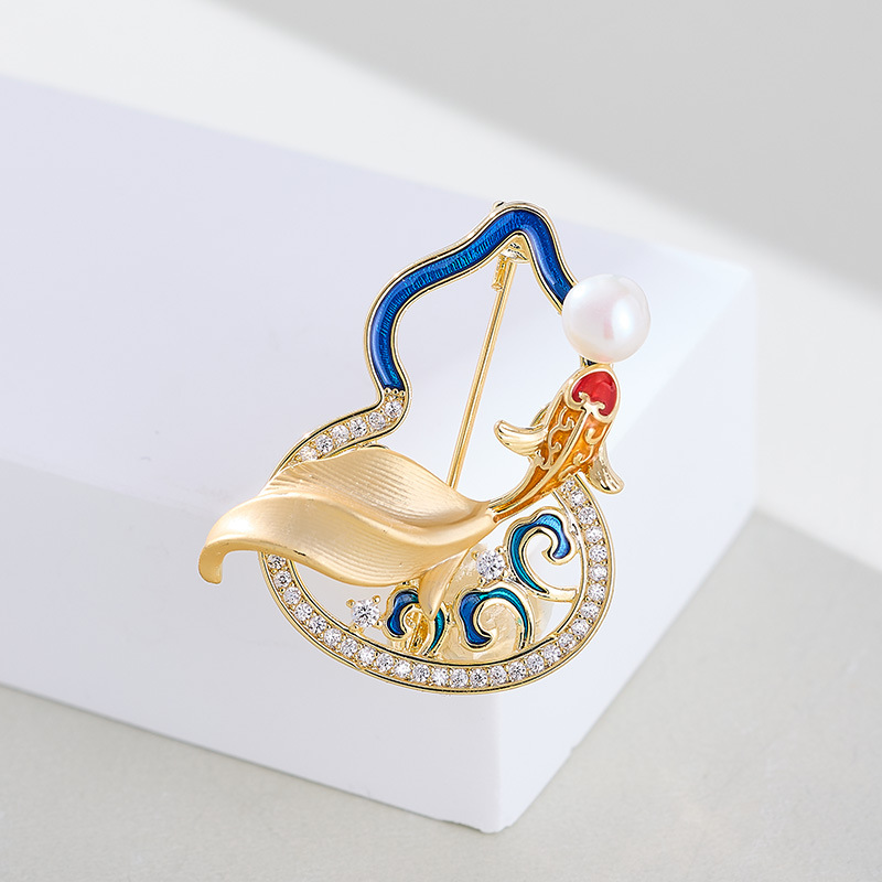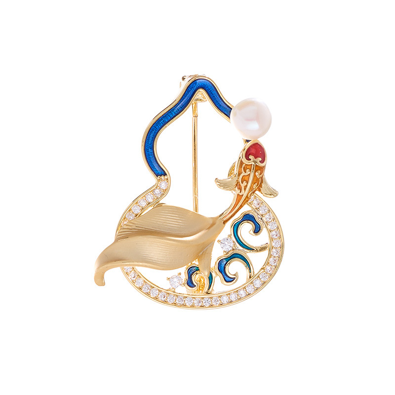 国风复古锦鲤葫芦淡水珍珠胸针高档精致汉服旗袍胸花西装别针配饰