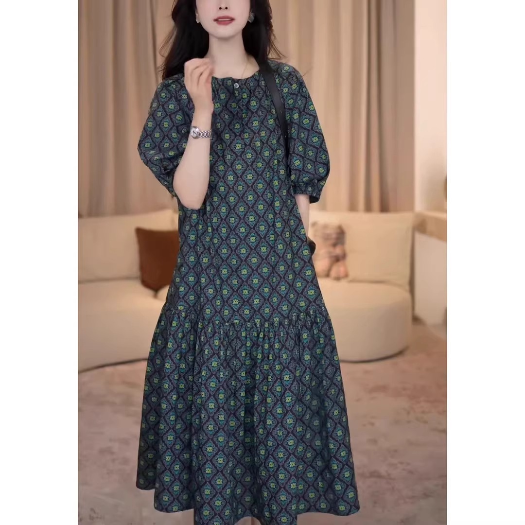 气质显瘦高腰短袖减龄连衣裙欧洲站2025夏季新款洋气休闲圆领中裙