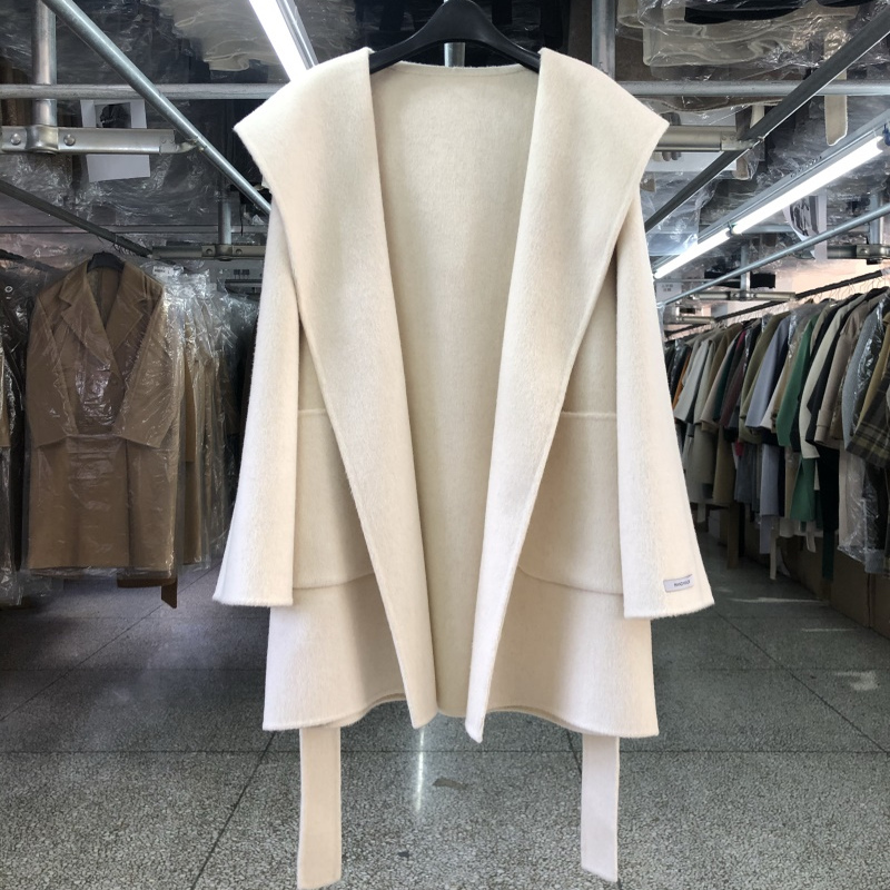 连帽短款小个子双面羊毛大衣女短款新款韩版宽松简约系带毛呢外套