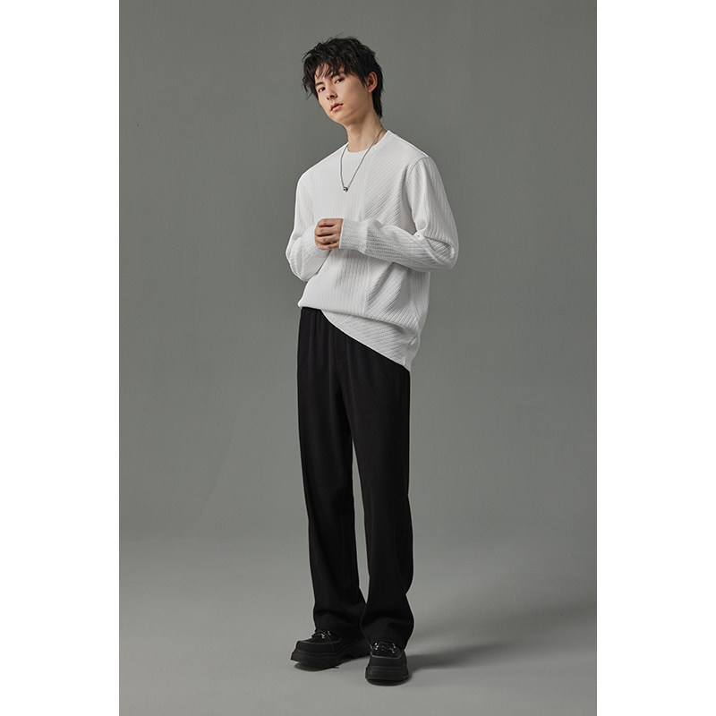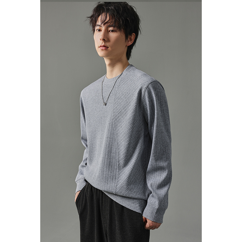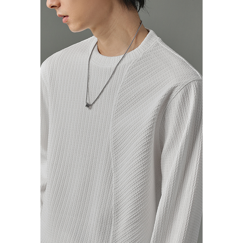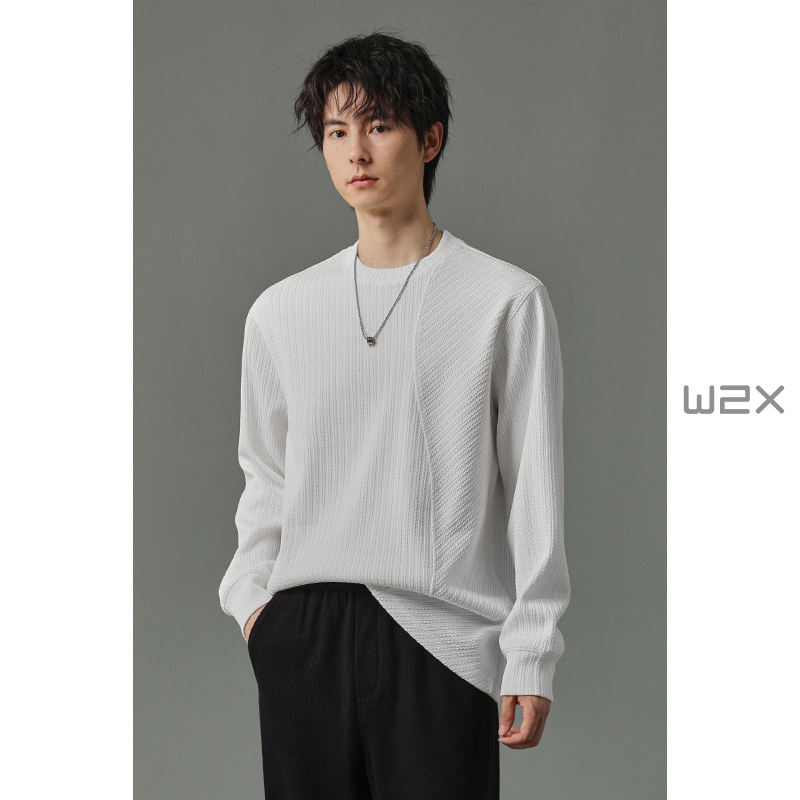 w2x秋冬季圆领长袖T恤阳光干净男生穿搭美式高质量高街打底衫内搭