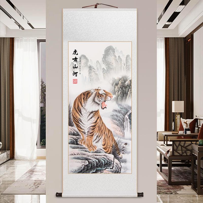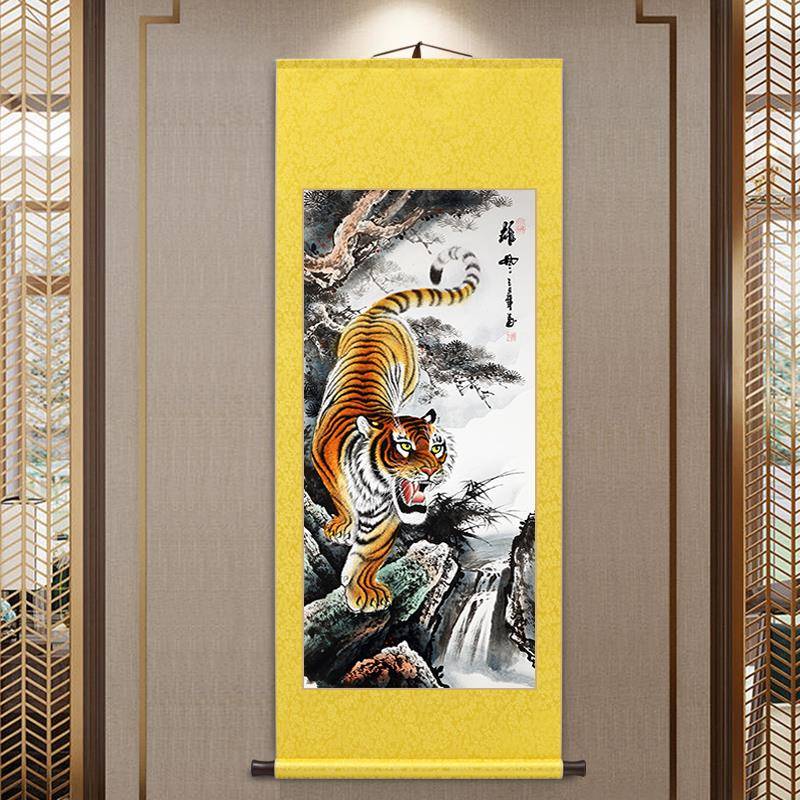霸气老虎卷轴挂画 画玄关画 画新中式客厅装饰画 画办公室茶室上