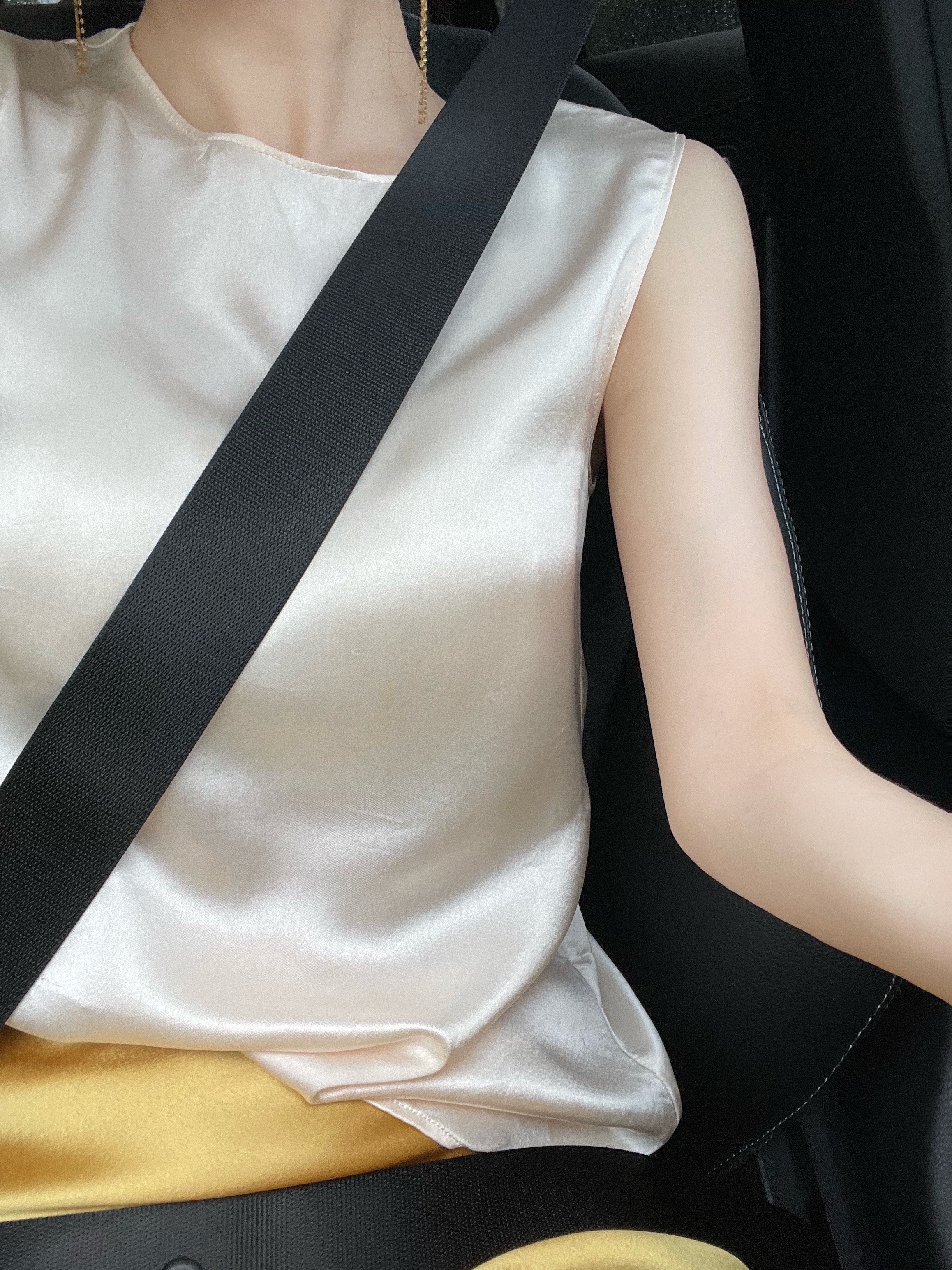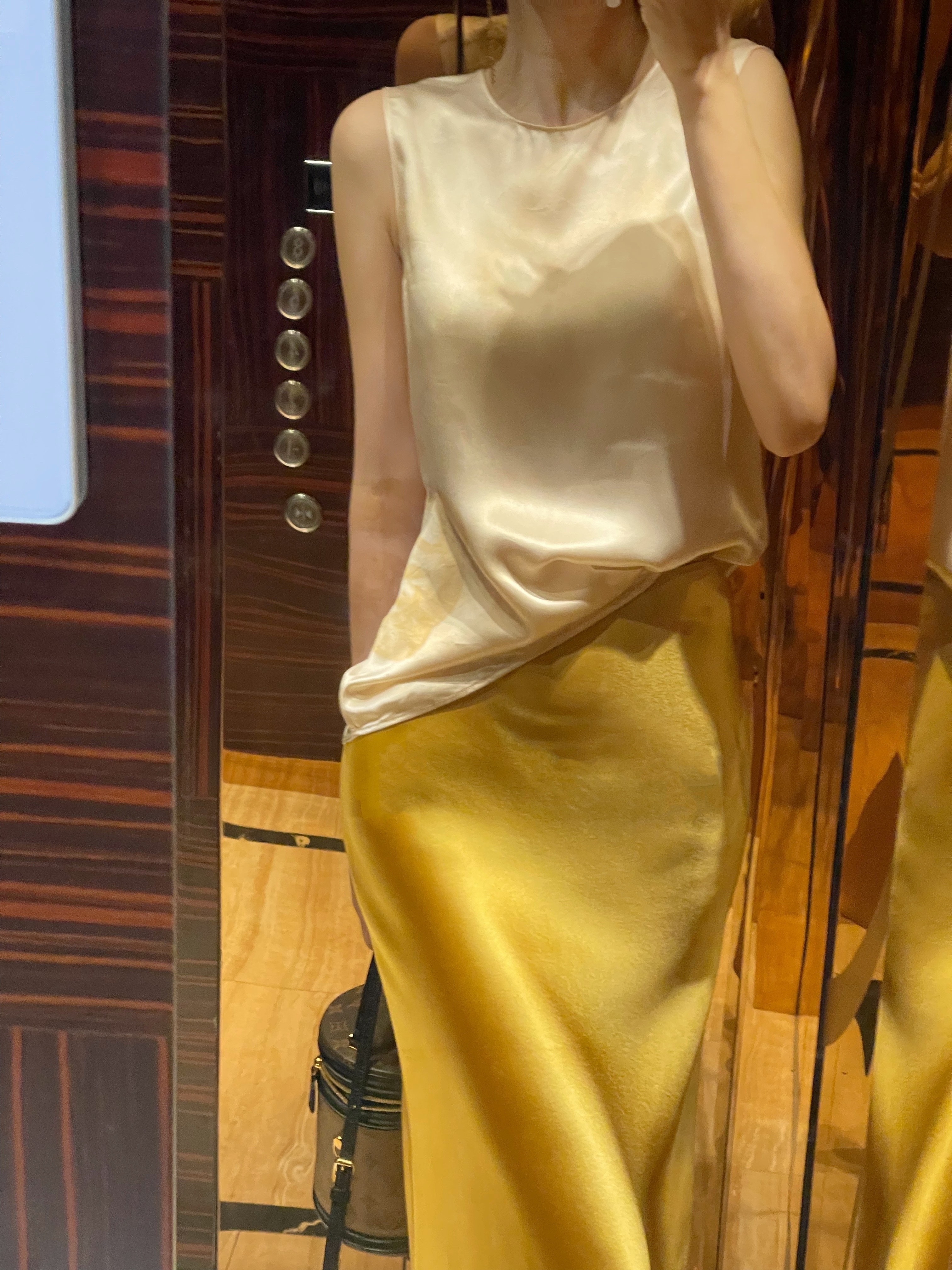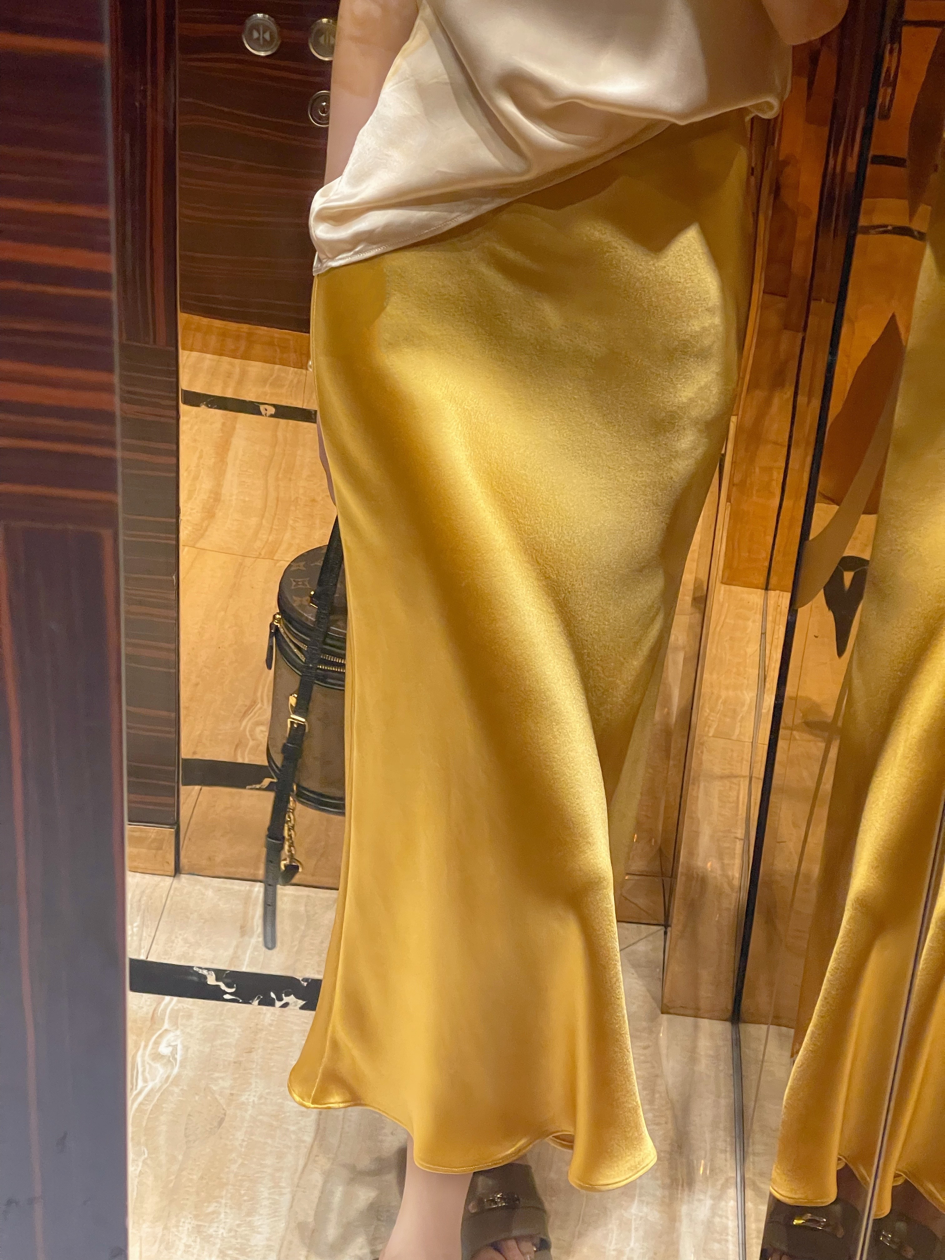 小众原创设计金色半身裙鱼尾裙通勤纯色简约醋酸连衣裙穿搭白色