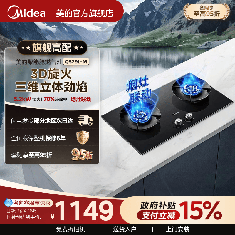 美的AK5PRO猛火燃气灶具天然气双灶台式家用嵌入式煤气灶官方