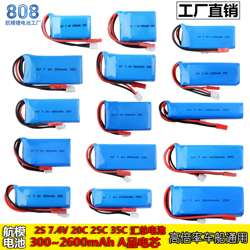 7.4V大容f量聚合物锂电池遥控飞机无人机四轴飞行器航模玩具2S电