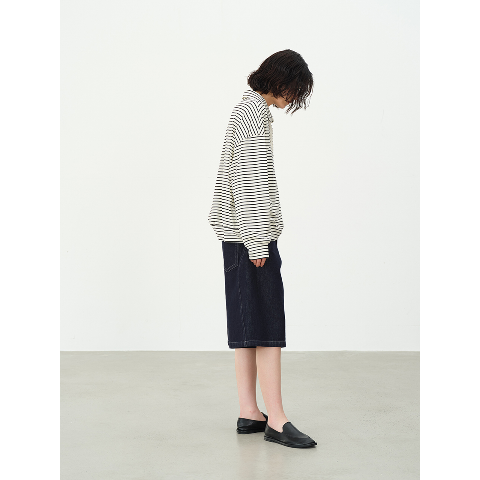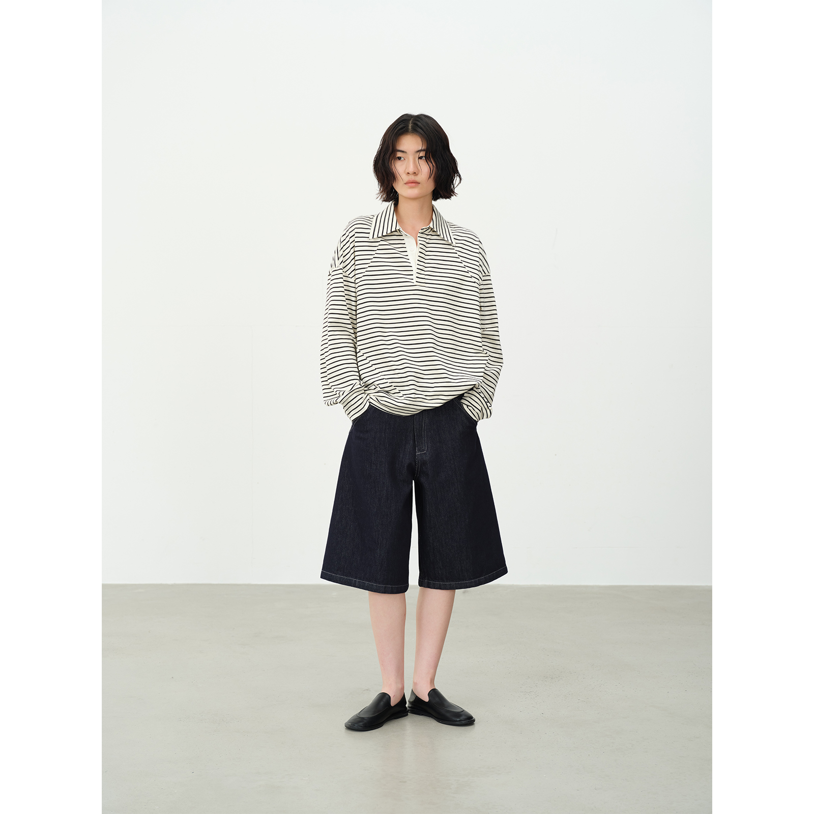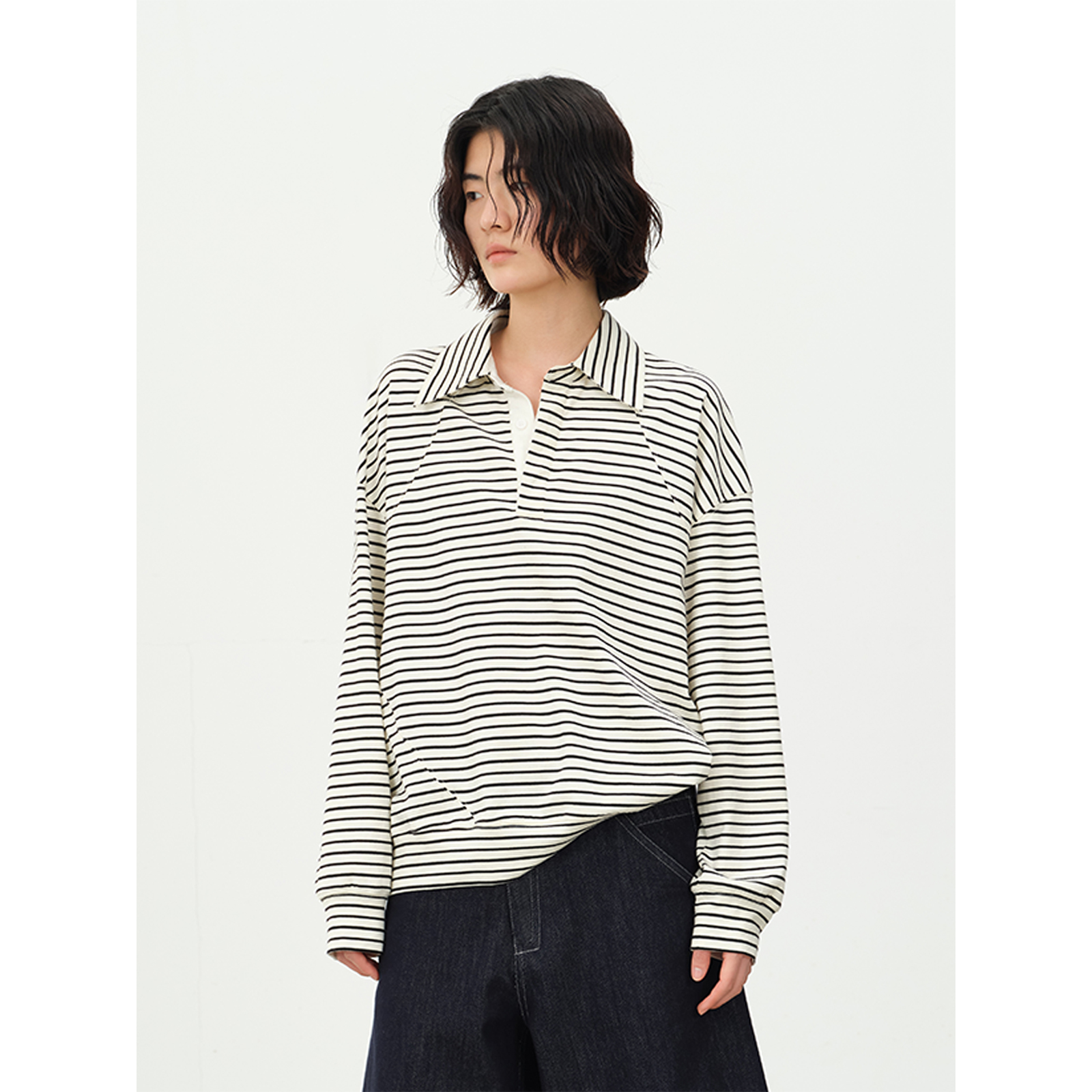 SILAVIE 原创休闲长绒棉真丝条纹POLO领设计针织衫套头卫衣