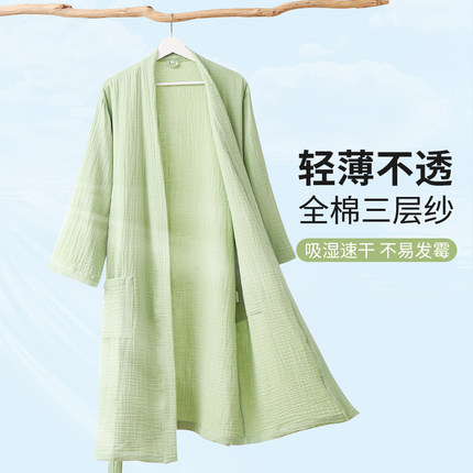 如奕三层纱布浴袍纯棉成人女吸水速干洗澡全棉浴衣男情侣睡衣睡袍