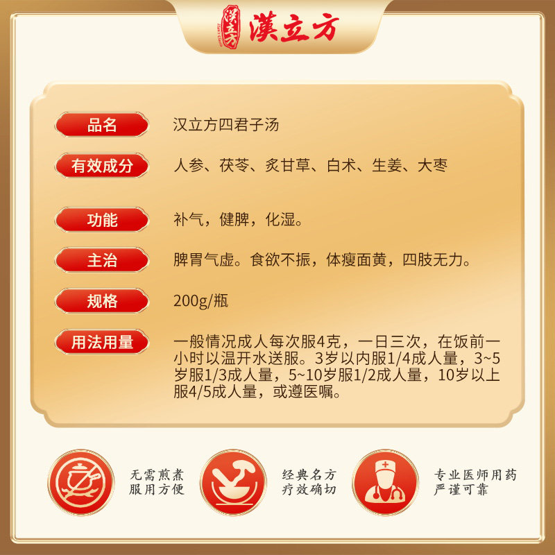 汉立方四君子汤补气同仁堂调理脾胃人参健脾胃肠胃散健脾祛湿中药