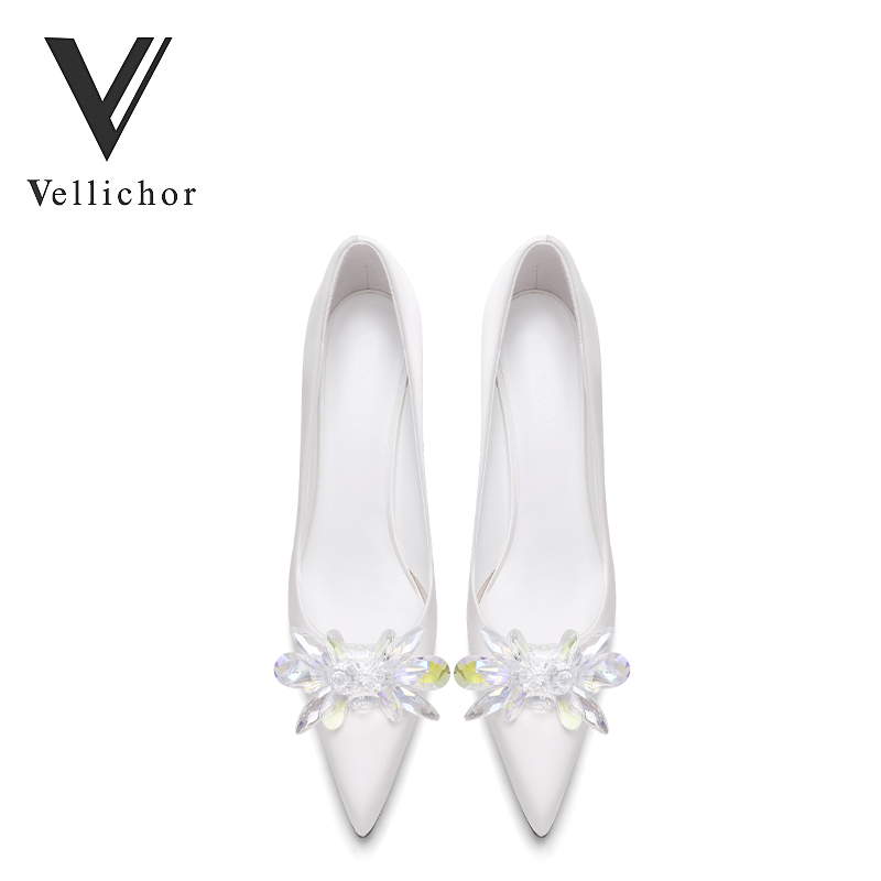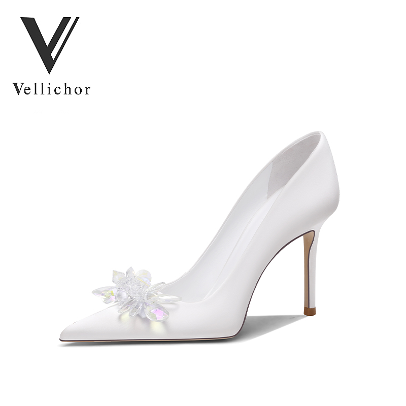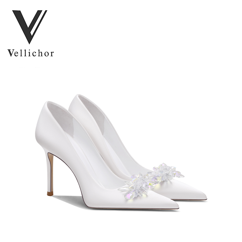 白色主婚纱新娘伴娘鞋2024年新款婚鞋水钻单鞋绸缎尖头细跟高跟鞋