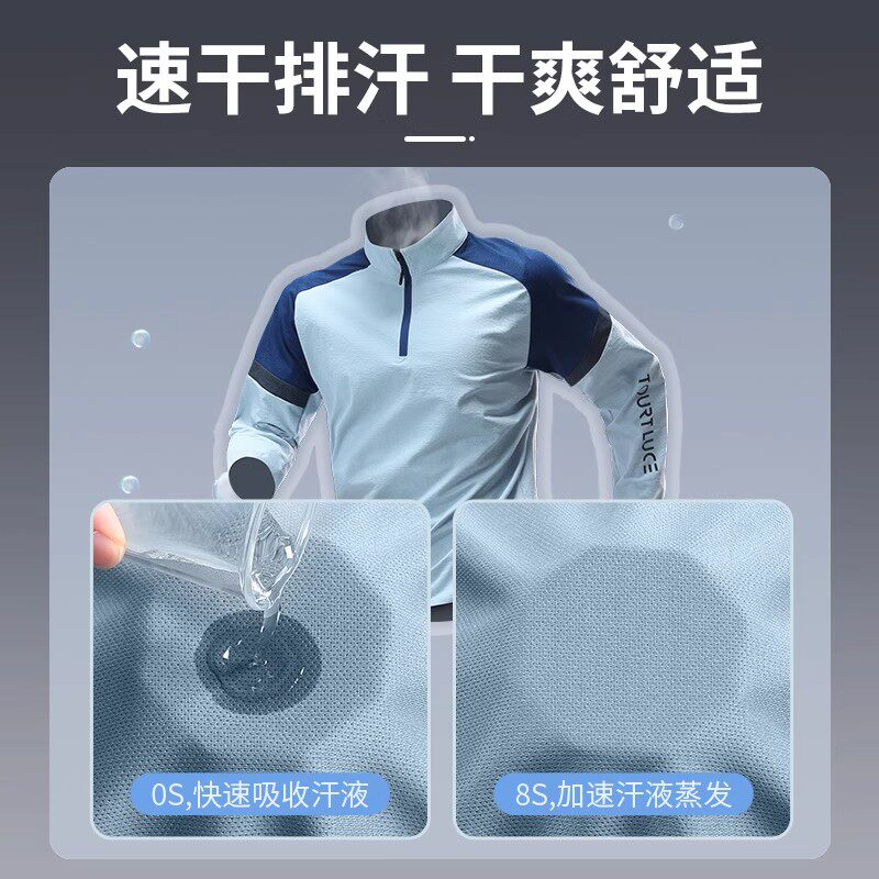 跑步t恤男运动外套体育生训练速干衣健身田径骑行长袖半拉链上衣