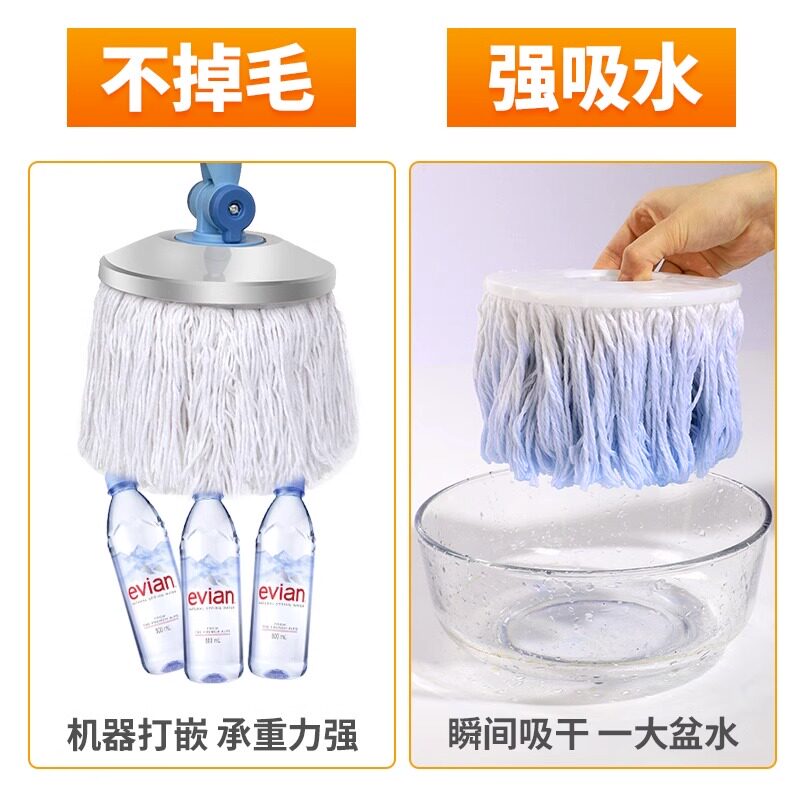 旋转拖把头全棉线地拖墩布头通用纯棉替换头16CM加厚圆形拖布头