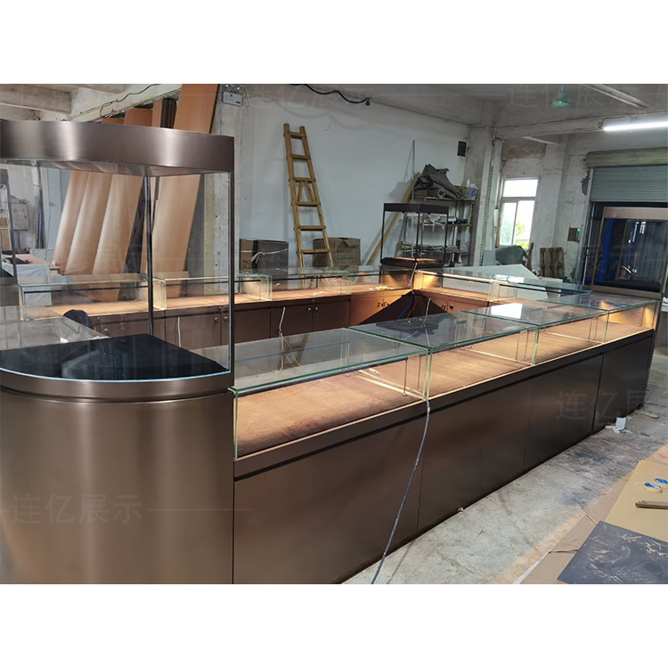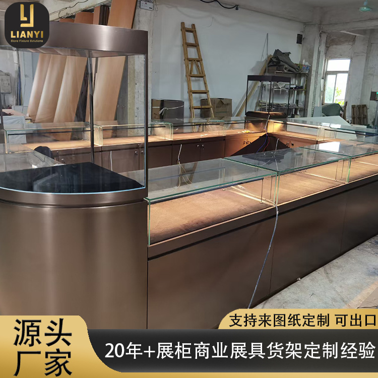 工厂定制珠宝展示柜带灯不锈钢玻璃珠宝柜台金银珠宝店展柜中岛柜