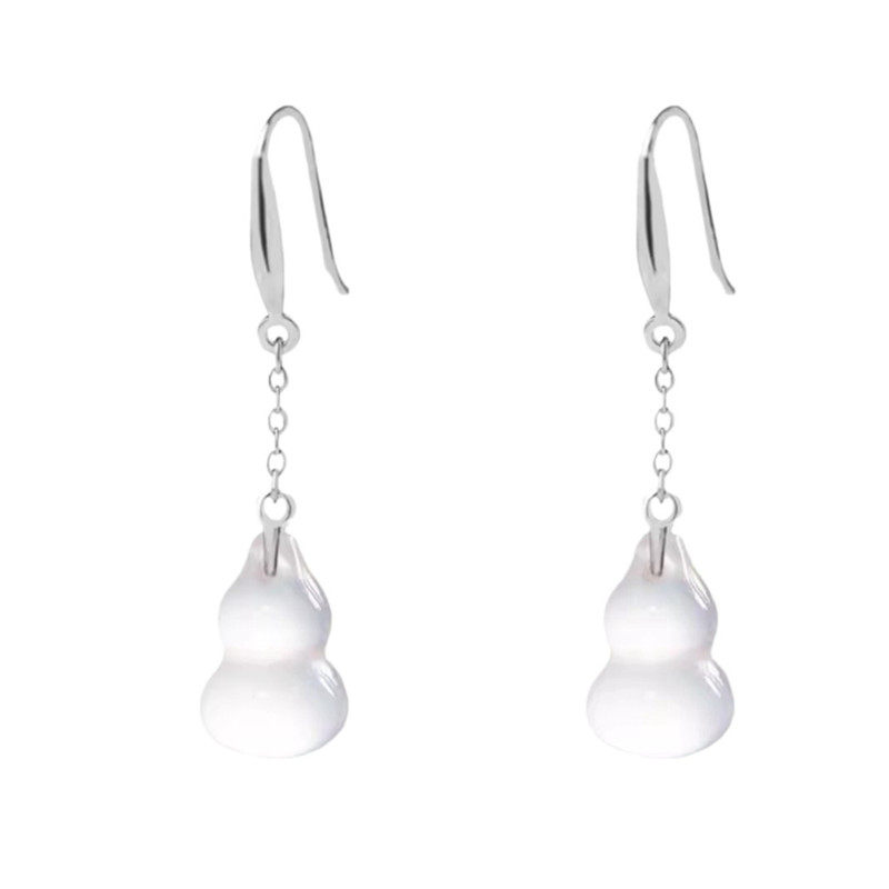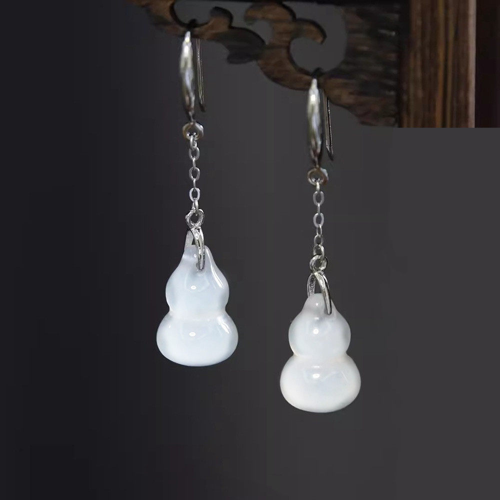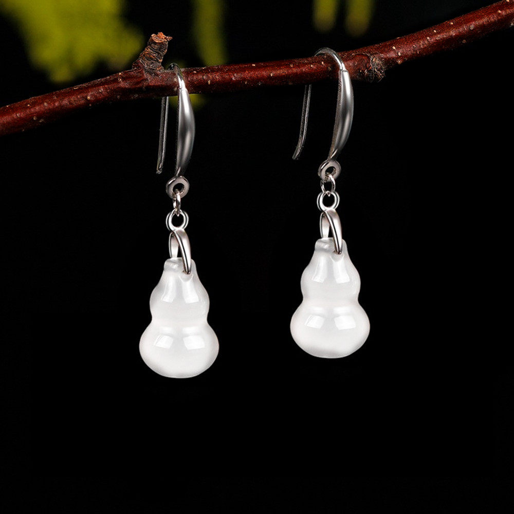 999纯银耳钩仿白玛瑙小葫芦耳环耳坠新中式民族风耳饰品女高级感