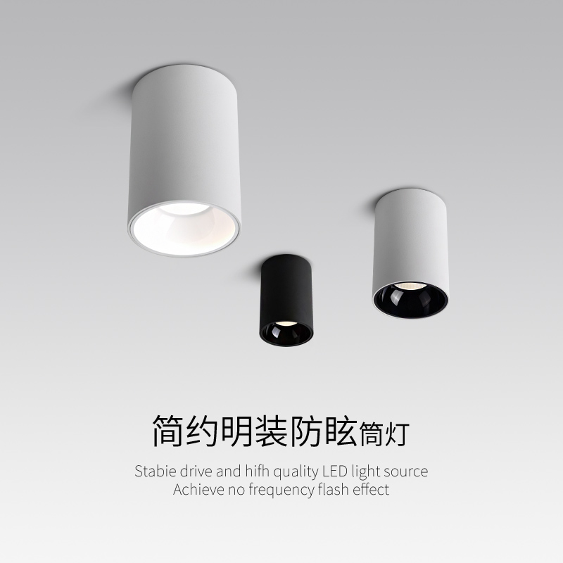 明装筒灯防眩光led射灯客厅无主灯免开孔吸顶式COB射灯玄关过道灯
