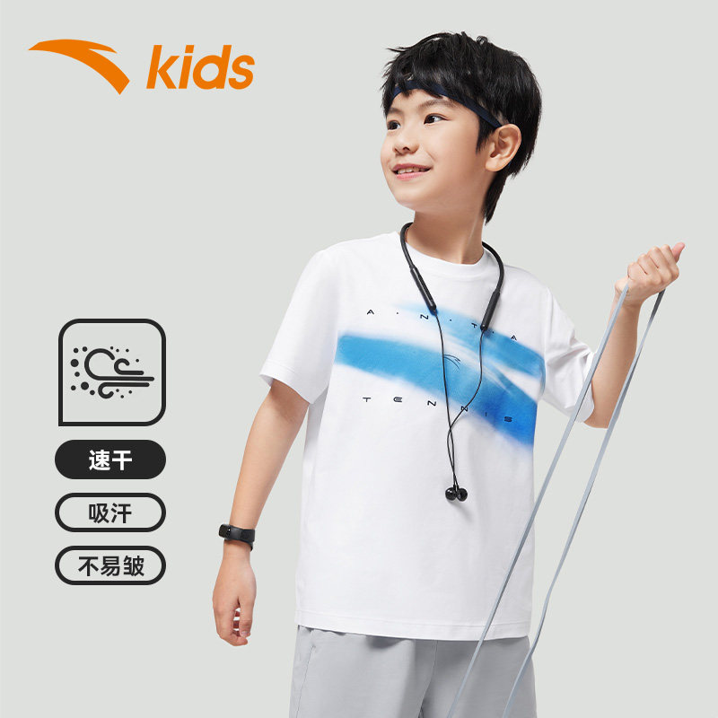 安踏童装男童休闲运动t恤2025秋季新款儿童速干短袖大童男孩夏装