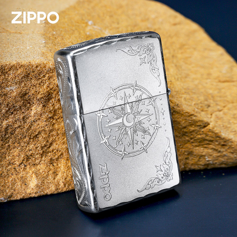 ZIPPO打火机镀银精雕繁花咬边十二星罗盘 爱情系列实用防风煤油男