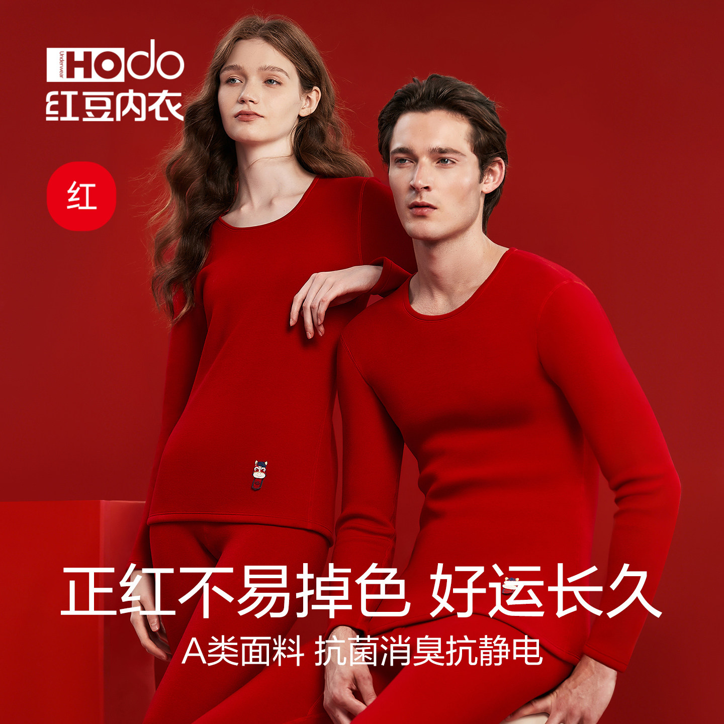 红豆情侣红色加绒加厚保暖内衣本命年男女士马年限定秋衣秋裤套装