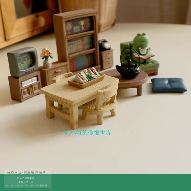 日式迷你家居餐桌椅子书柜微缩场景 娃娃屋迷你装饰摆件 拍摄道具