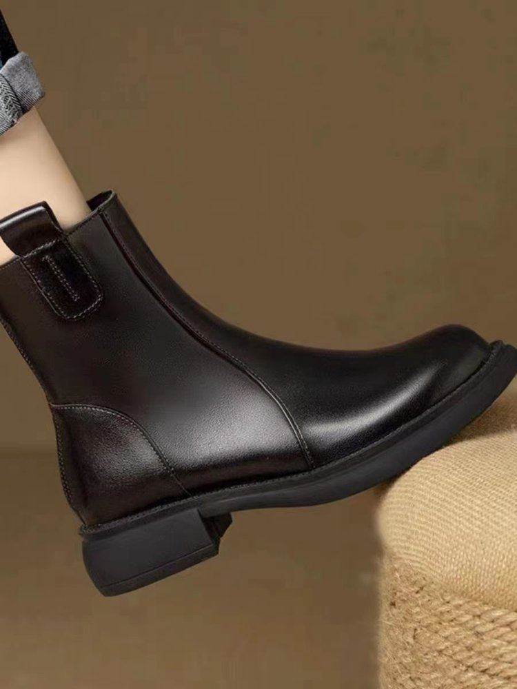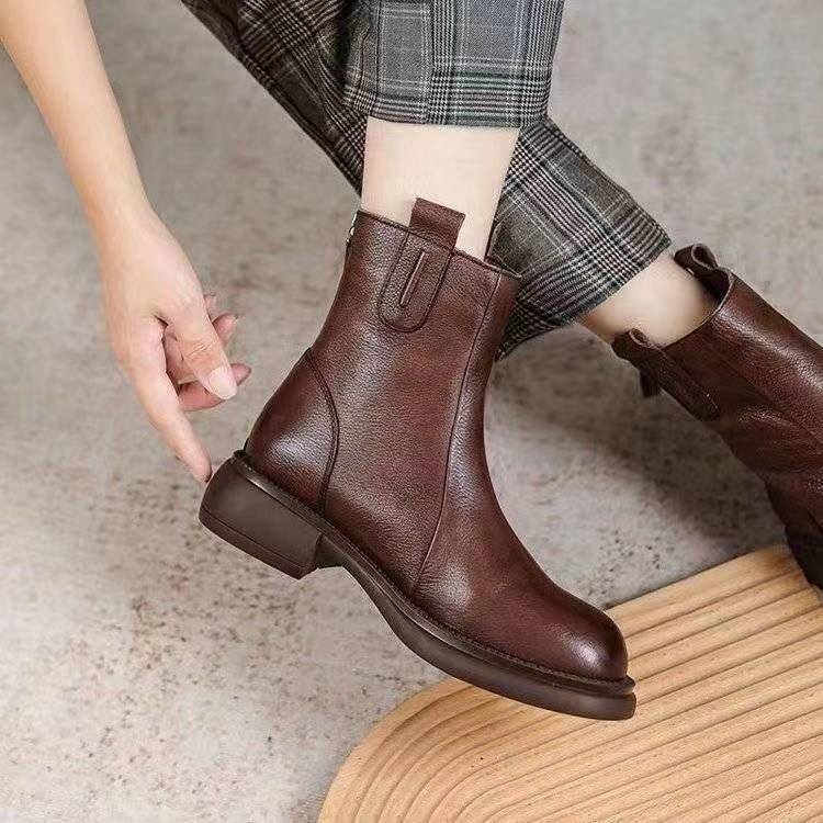 大东妞清仓真皮软底短筒马丁靴女秋冬新款中跟骑士靴加绒切尔西靴
