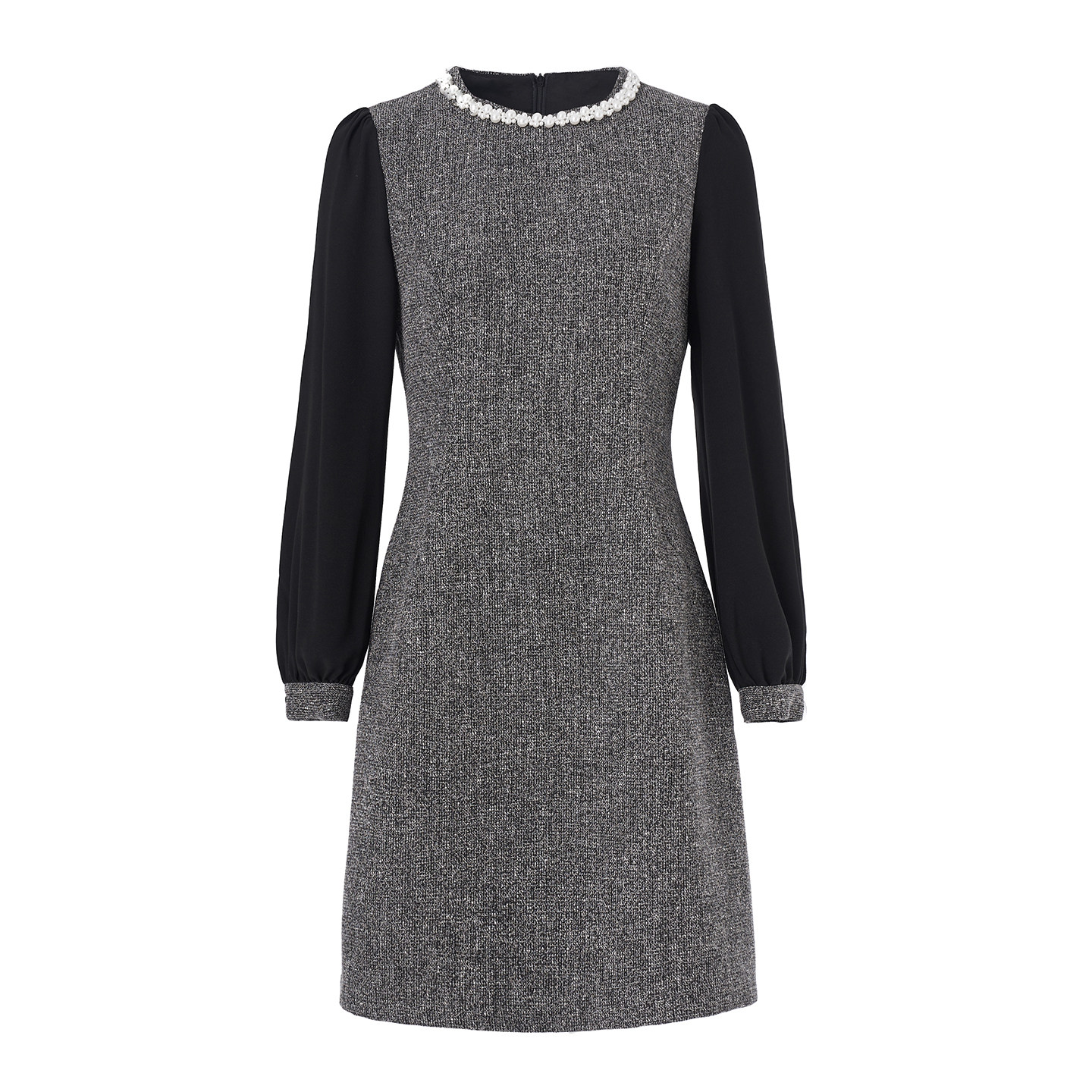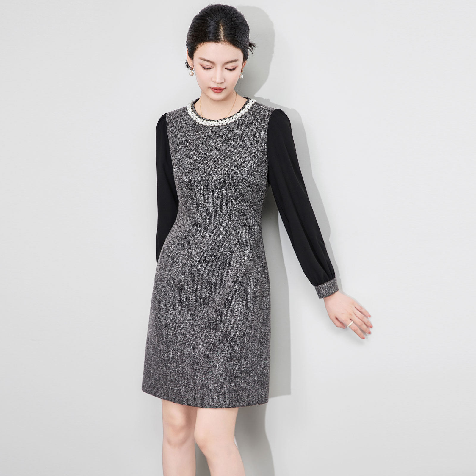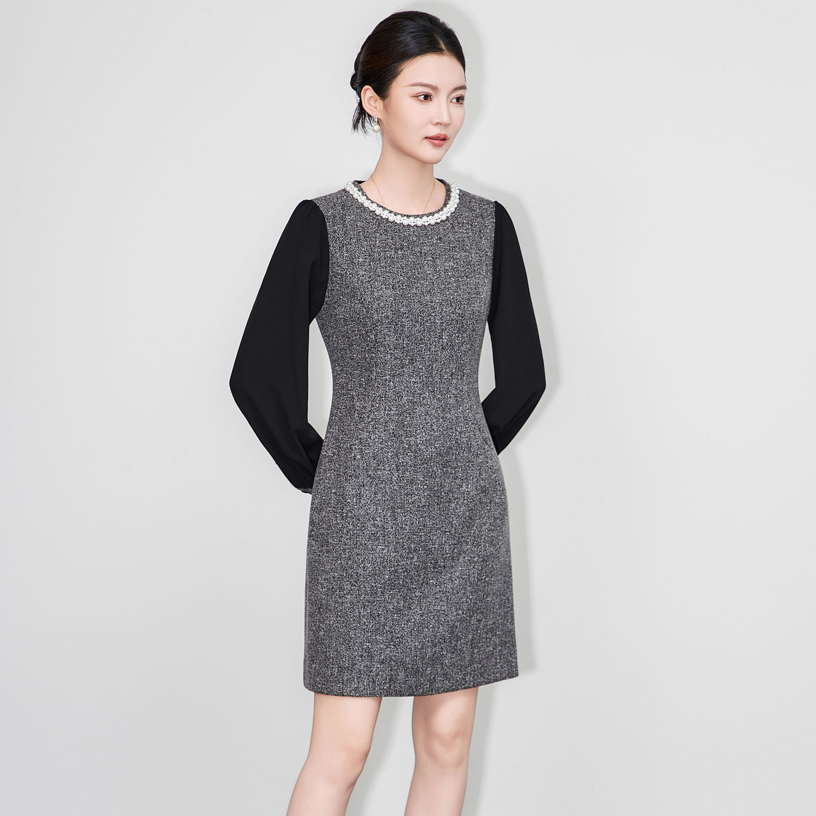 迪奥秋季连衣裙女25新款法式千金名媛风长袖中长裙轻奢钉珠礼服裙