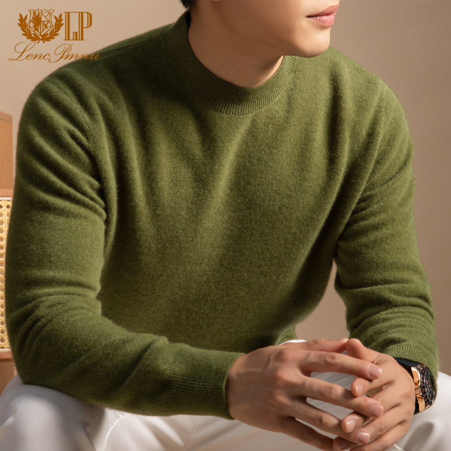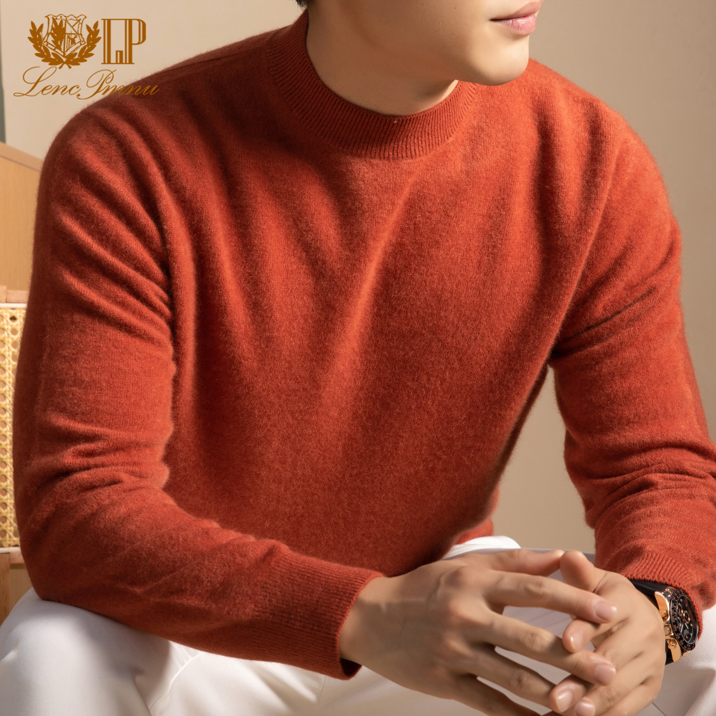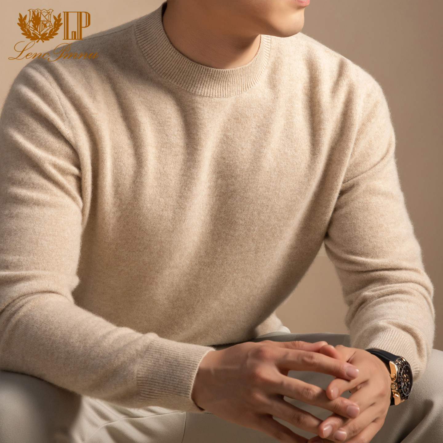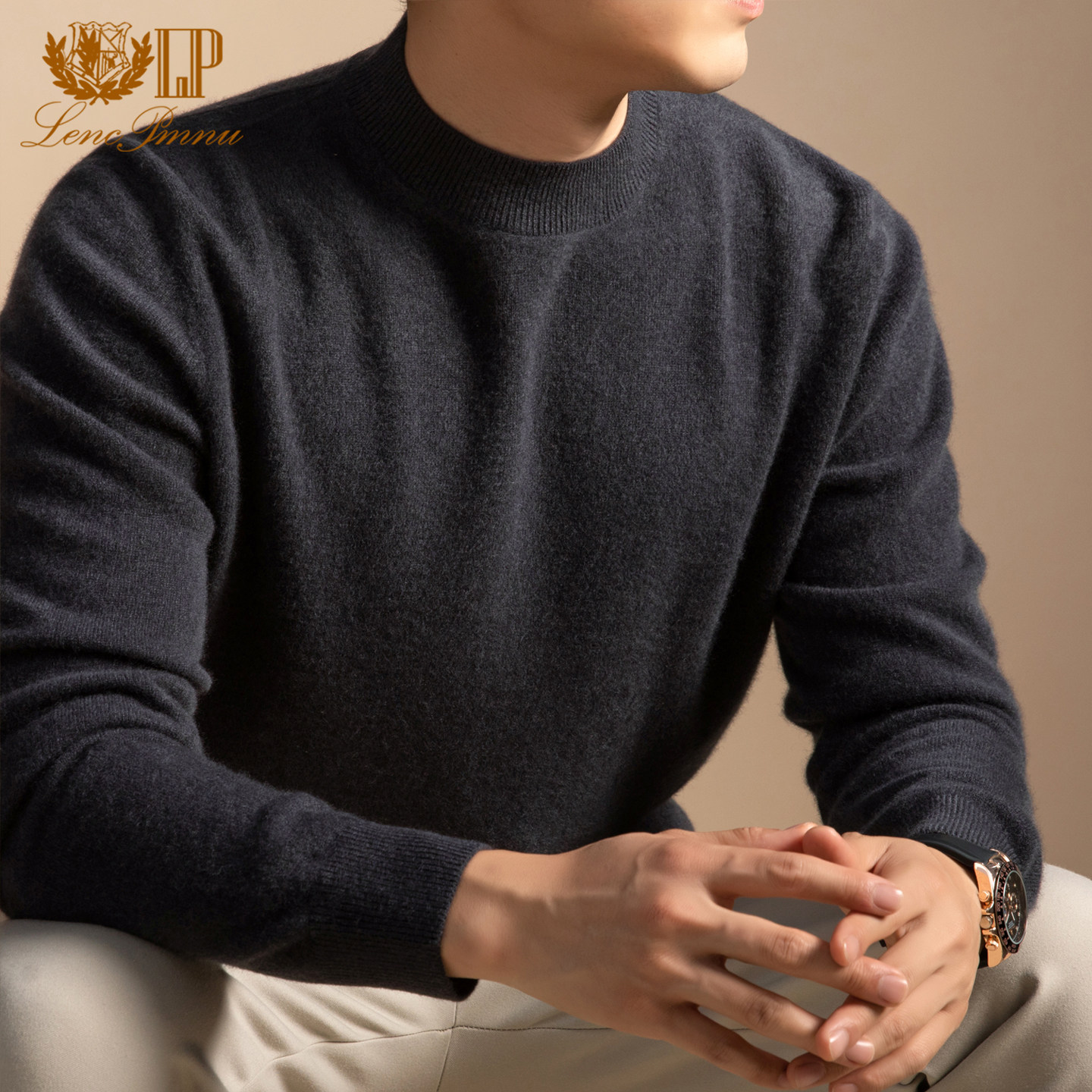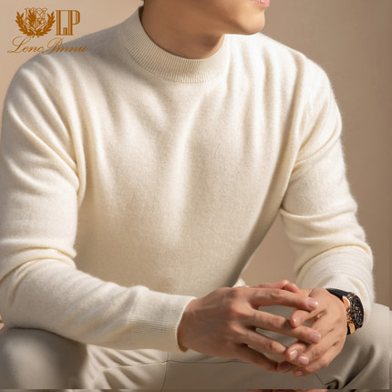 LP正品鄂尔多斯市100%纯山羊绒衫男士圆领保暖100支拉毛打底毛衣
