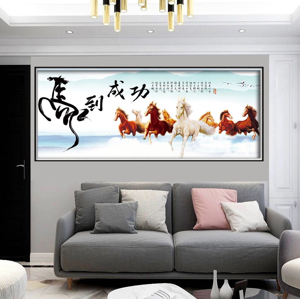 流水生财2000片拼图客厅贴画山水国画世界名画背景墙装饰画挂壁画