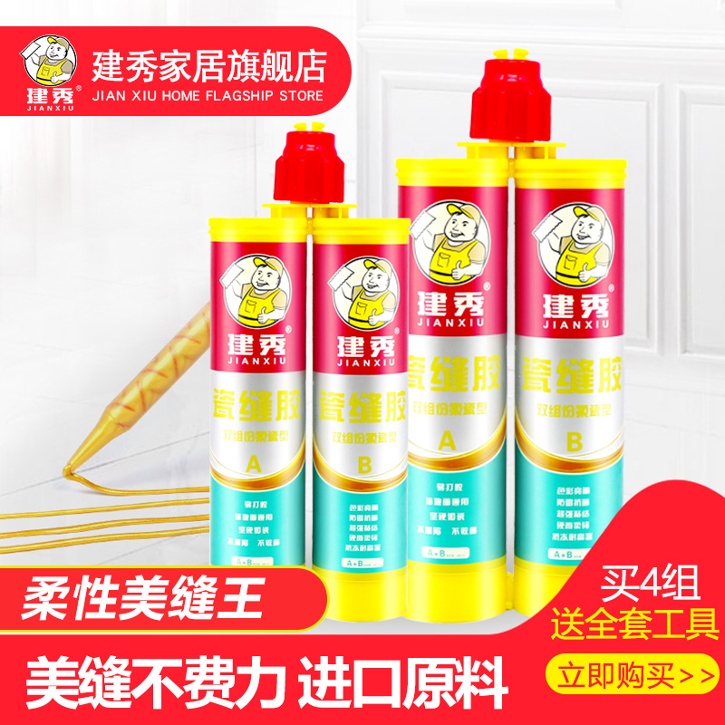 建秀瓷缝胶瓷砖地砖专用防水美缝胶墙勾填缝剂真双组份胶白镏金色
